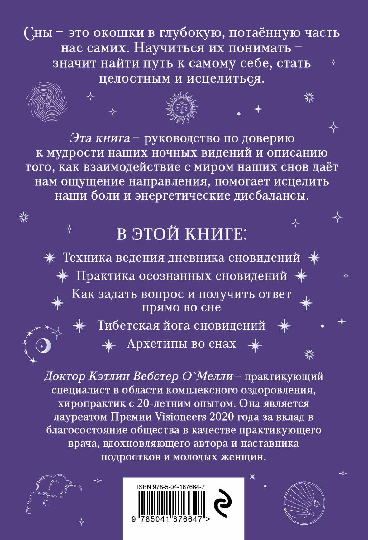 Сны - это окошки в глубокую, потаённую часть нас самих. Научиться их понимать - значит, найти путь к самому себе, стать целостным и исцелиться. Эта книга - руководство по доверию к мудрости наших ночных видений и описанию того, как взаимодействие с миром наших снов даёт нам ощущение направления, помогает исцелить наши боли и энергетические дисбалансы. В этой книге: - Техника ведения дневника сновидений. - Практика осознанных сновидений. - Как задать вопрос и получить ответ прямо во сне. - Тибетская йога сновидений. - Архетипы во снах. Доктор Кэтлин Вебстер О'Мелли - практикующий специалист в области комплексного оздоровления, хиропрактик с 20-летним опытом. Она является лауреатом Премии Visioneers за личные достижения 2020 года за вклад в благосостояние общества в качестве практикующего врача, вдохновляющего автора и наставника подростков и молодых женщин.| Издательство | ООО "Издательство "Эксмо" |