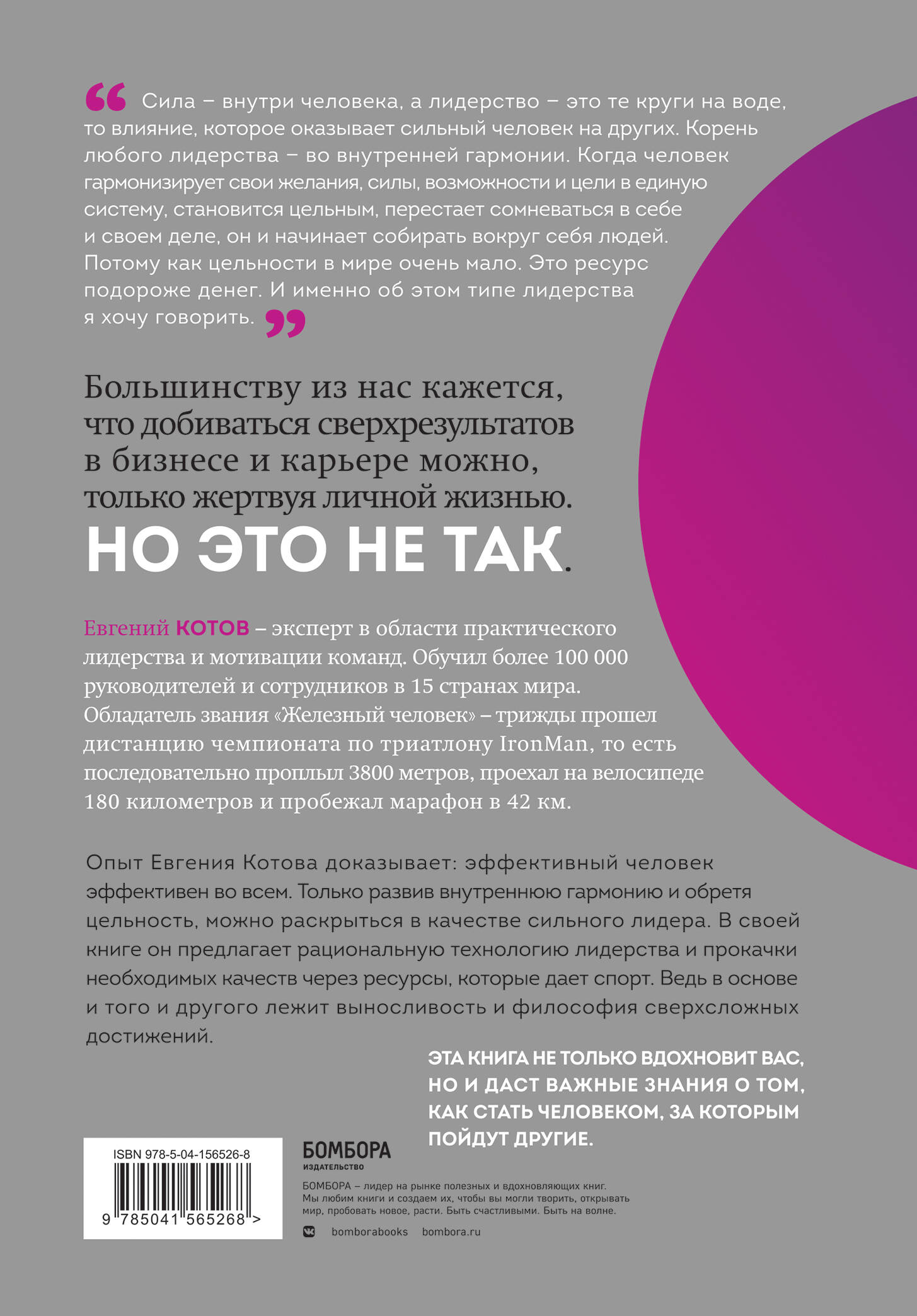 Опыт Евгения Котова доказывает: эффективный человек эффективен во всем. Только развив внутреннюю гармонию и обретя цельность, можно раскрыться в качестве сильного лидера. В своей книге он предлагает рациональную технологию лидерства и прокачки необходимых качеств через ресурсы, которые дает спорт. Ведь в основе и того и другого лежит выносливость и философия сверхсложных достижений.