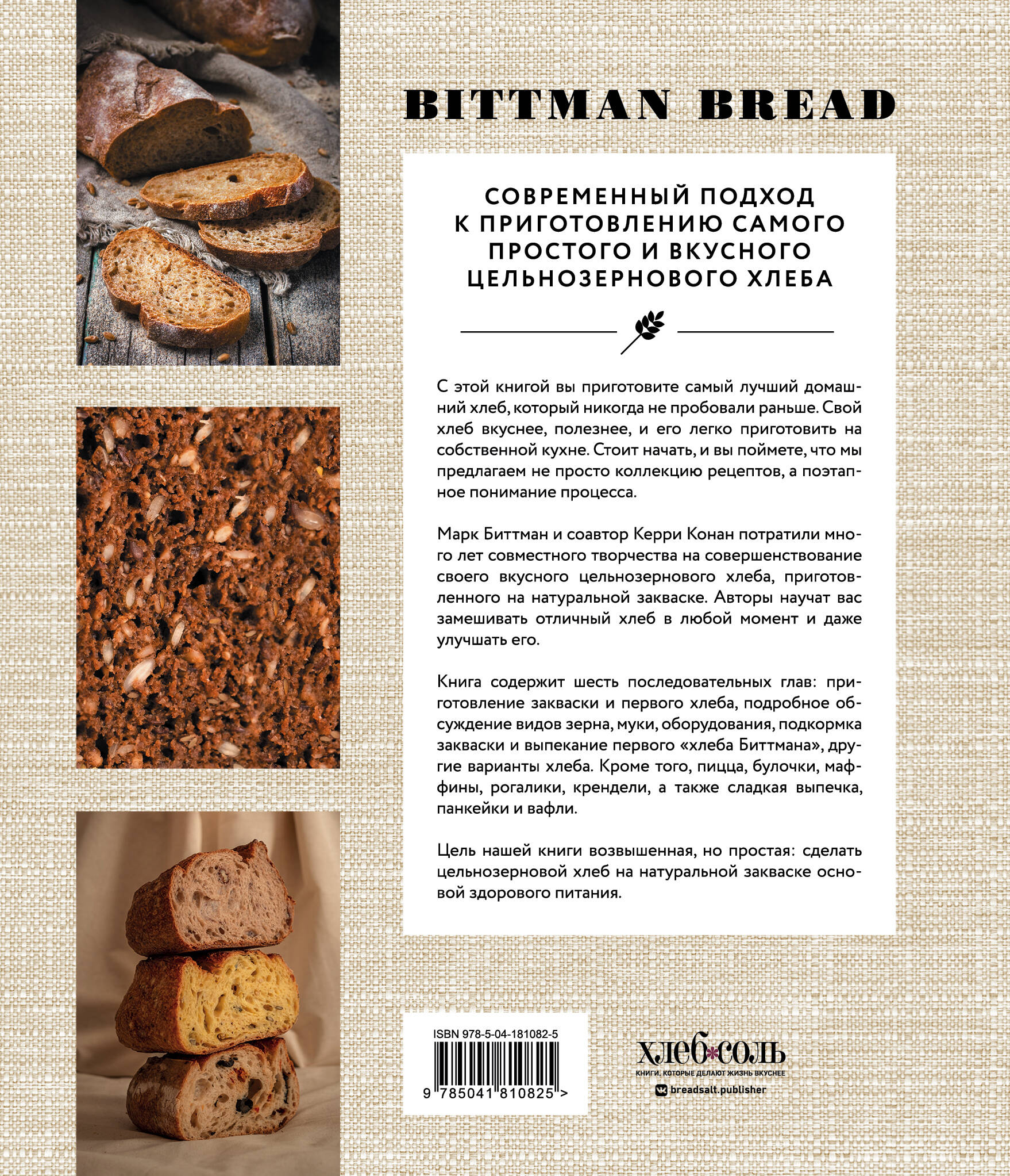 Свой хлеб вкуснее, полезнее, и его легко приготовить на собственной кухне. С этой книгой вы приготовите самый лучший домашний хлеб, который никогда не пробовали раньше. Стоит начать, и вы поймете, что авторы предлагают не просто коллекцию рецептов, а поэтапное понимание процесса. Марк Биттман и Керри Конан потратили много лет совместного творчества на совершенствование своего вкусного цельнозернового хлеба, приготовленного на натуральной закваске. Авторы научат вас замешивать отличный хлеб в любой момент и даже улучшать его. В этой книге: • Теория, список необходимых ингредиентов и инвентаря для приготовления цельнозернового хлеба. • Техника приготовления базового хлеба, булочек и деревенского хлеба Биттмана. • Основные тонкости приготовления закваски, приготовления и складывания теста и выпекания домашнего хлеба. • Рецепты хлеба для сэндвичей, багетов, крекеров и панцанелла. • Варианты классической «Маргариты», фокаччи, маффинов, завитушек, рогаликов и десертов на хлебной основе. «Приготовьтесь к тому, что путь к успеху не будет быстрым: ваш первый опыт, возможно, вызовет у вас смешанные чувства, и он совершенно точно будет хуже, чем десятый, а десятый - хуже, чем пятидесятый. Но настанет день, когда ваш хлеб будет выглядеть так же красиво, как фотографии на страницах этой книги, и вы сможете повторять его так часто, как захотите». - Марк Биттман Марк Биттман - журналист, писатель и автор бестселлеров «Как приготовить все что угодно. Большая книга рецептов и техник», «Истина в еде», «Цельнозерновой хлеб и выпечка».| Издательство | ООО "Издательство "Эксмо" |