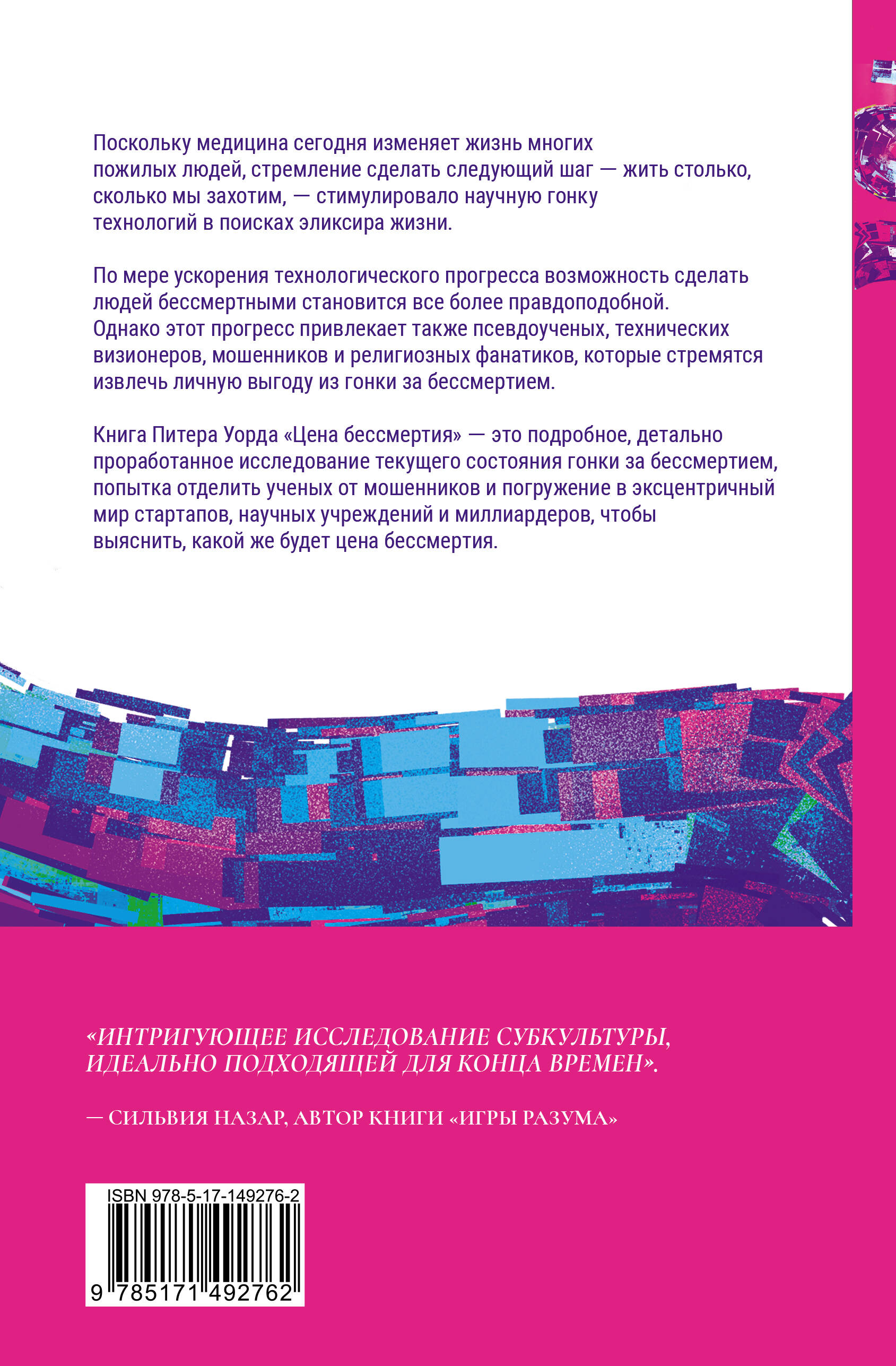 Поскольку медицина сегодня изменяет жизнь многих пожилых людей, стремление сделать следующий шаг - жить столько, сколько мы захотим, - стимулировало научную гонку технологий в поисках эликсира жизни. По мере ускорения технологического прогресса возможность сделать людей бессмертными становится все более правдоподобной. Однако этот прогресс привлекает также псевдоученых, технических визионеров, мошенников и религиозных фанатиков, которые стремятся извлечь личную выгоду из гонки за бессмертием. Книга Питера Уорда "Цена бессмертия" - это подробное, детально проработанное исследование текущего состояния гонки за бессмертием, попытка отделить ученых от мошенников и погружение в эксцентричный мир стартапов, научных учреждений и миллиардеров, чтобы выяснить, какова же будет цена бессмертия.| Издательство | ИЗДАТЕЛЬСТВО "АСТ" |