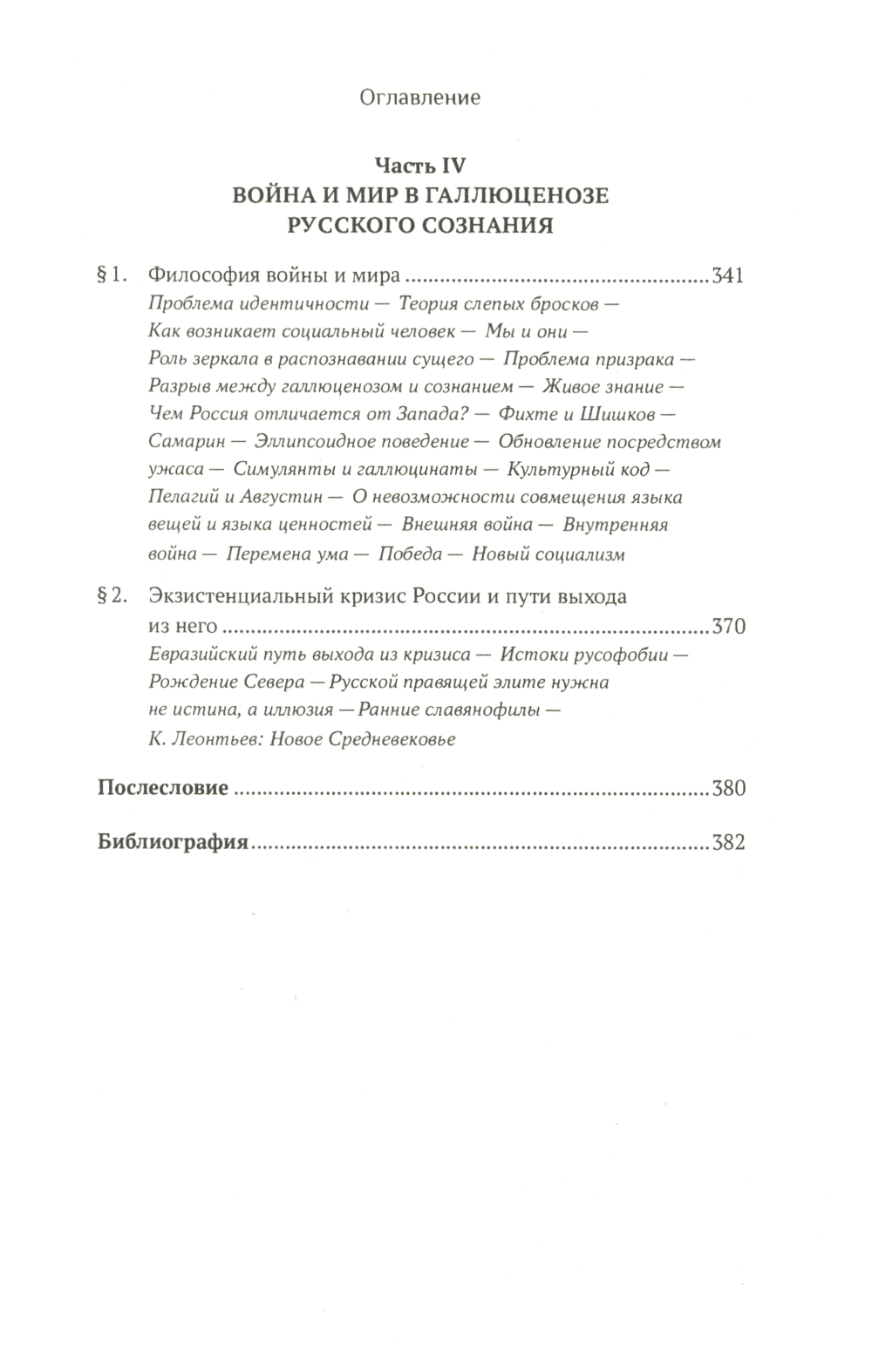 Эта книга - путешествие по галлюценозу русского сознания с тем, чтобы понять, что значит сегодня быть русскими, какие у нас ценности, в чем мы видим смысл, а в чем его не видим, что считаем умным, а что безумным, и для чего нам еще понадобилось создавать софиологию. Обо всем этом мы узнаем в «философском галлюценозе» книги. Хотя мир состоит из тел, галлюценоз состоит не из тел. Он состоит из ценностей и смыслов, из образов и заготовок для них. Одни философы преувеличивают роль материи в жизни человека, другие - роль сознания. Книга обращает внимание на галлюцинации. Это и не материя, и не сознание. Человек - это точка, в которой мир не может отличить себя от галлюцинации, а каждый из нас не может отличить себя от своего «я». В галлюцинации бытие совпадает с мыслью о бытии. В момент тождества мир показывает себя таким, какой он есть. Но об этом мире сказать ничего нельзя. Его можно только увидеть. Чем больше мы о нем говорим, тем меньше мы его понимаем. Попытка человека рассказать о том, какой есть мир сам по себе, составляет коллективный внутренний мир человека. Общая галлюцинация дает нам знания, но лишает нас очевидности. В стремлении к знанию человек лишает себя очевидного. В стремлении к очевидному он лишает себя сознания. Преодоление разрыва между знанием и очевидным ведет нас к художественным галлюцинациям, к воображаемому, в котором вещи узнаются раньше, чем человек встретится с ними в своей жизни. В воображаемом ум обнаруживает свое родство с безумием. В галлюценозе сказок мы узнаем о том, что единственным свойством сознания является придание смысла бессмысленному. Сказки лишают человека сущности, и поэтому ему ничего не остается, как заполнять зияющую пустоту бытия смыслами. Завершается путешествие по русскому сознанию галлюценозом войны и мира, лада и распри. В книге рассказывается о смысловых галлюцинациях и зеркальных свойствах любых ценностей, учрежденных человеком.| Издательство | Проспект |