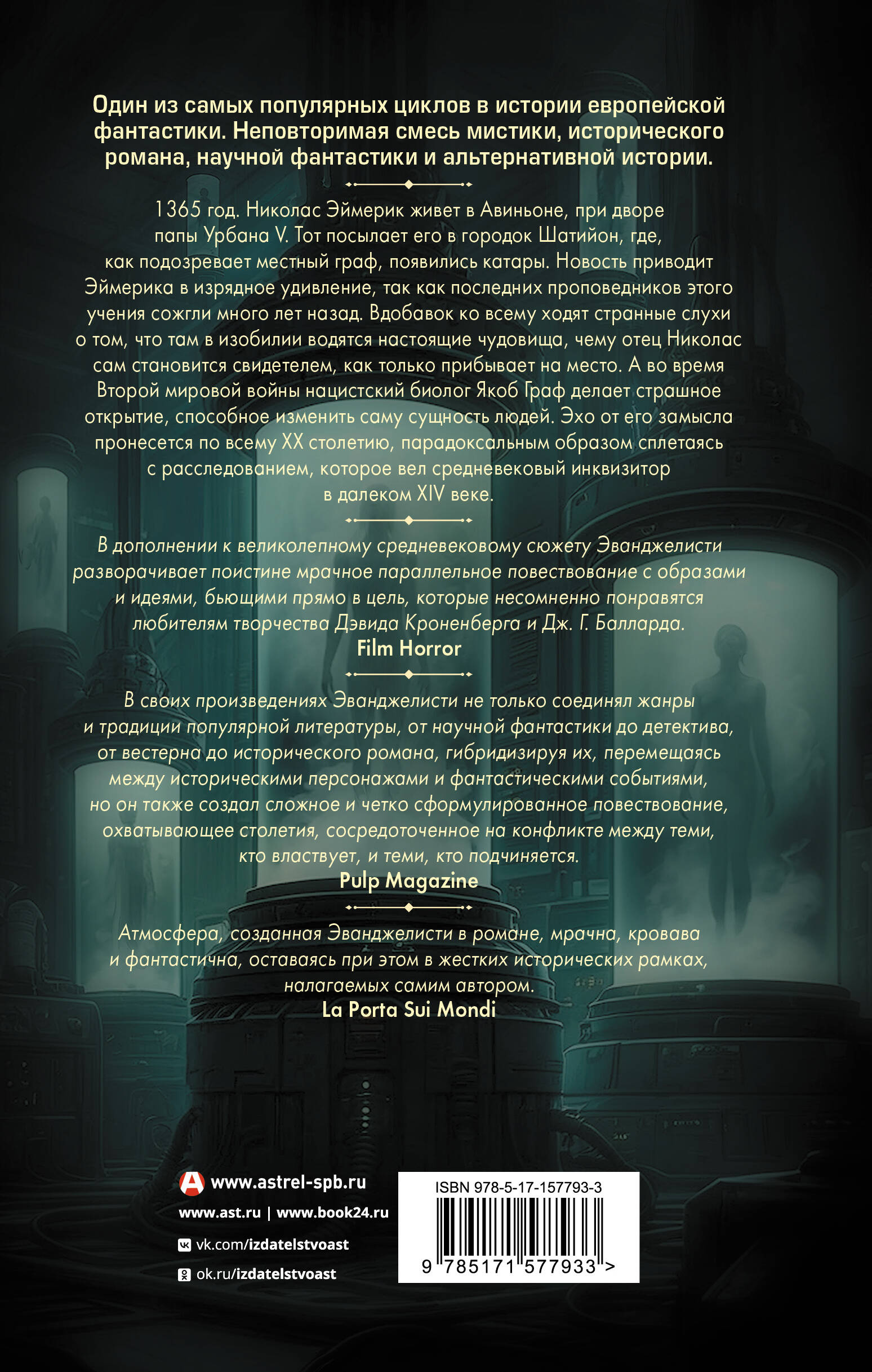 - «Цепи Эймериха» - вторая книга цикла популярного итальянского писателя Валерио Эванджелисти. - «Инквизитор Николас Эймерик» - один из самых успешных циклов в истории европейского фэнтези. Книги цикла завоевывали Большую премию воображения, премии «Урания» и «Италия». - Цикл о Николасе Эймерике - взрывная смесь фэнтези, исторического детектива, конспирологического триллера и научной фантастики. Книги цикла рекомендуются поклонникам творчества Анджея Сапковского и Яцека Пекары. - Цикл о Николасе Эймерике состоит из 10 романов, по мотивам которых вышло несколько серий комиксов и видеоигра. - Книги цикла выходят на русском языке впервые.
