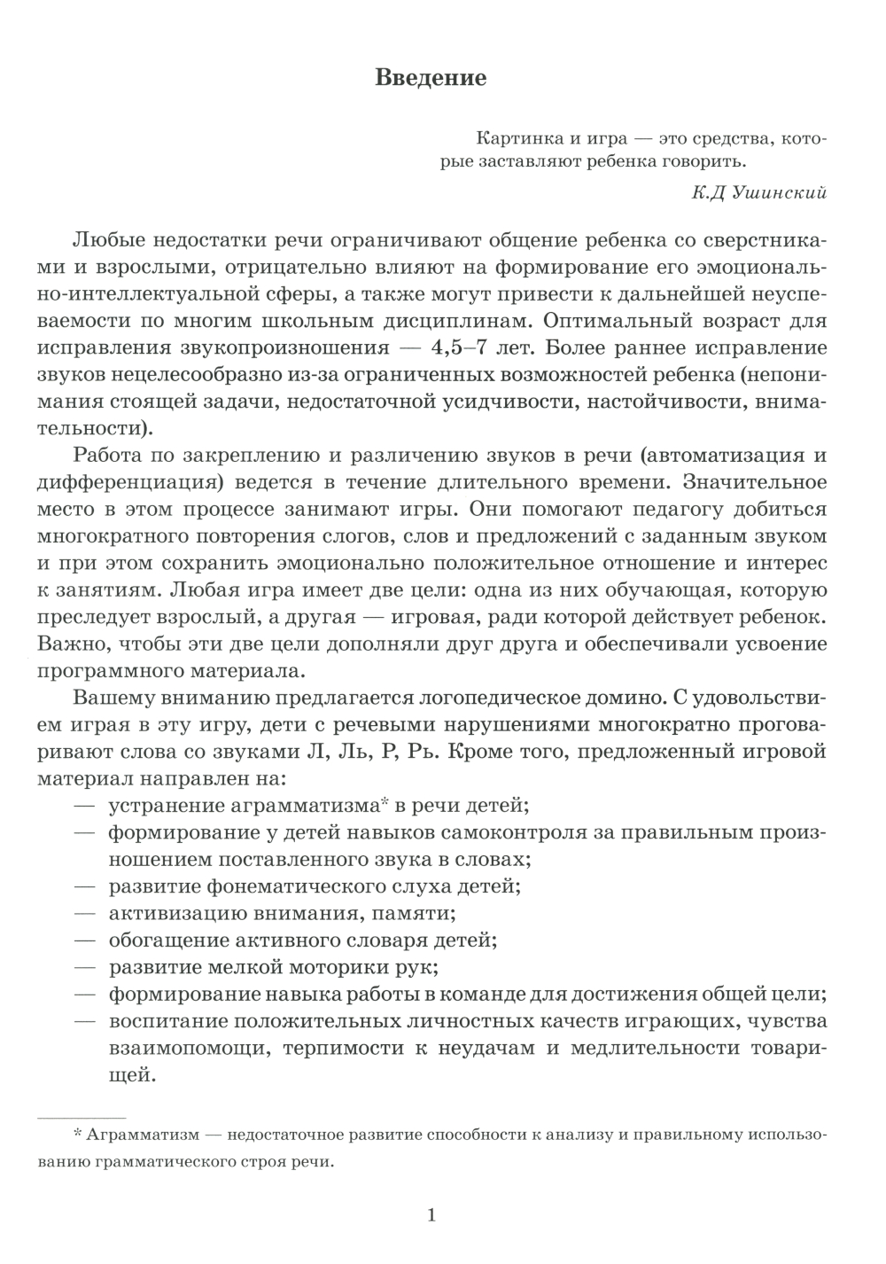 Цель логопедического домино, представленного в данном пособии, - автоматизация и дифференциация сонорных звуков Л, Ль, Р, Рь в игровой форме у детей с речевыми нарушениями. Кроме того, предложенный игровой материал будет способствовать развитию фонематического слуха, устранению аграмматизма в речи, поможет сформировать навыки самоконтроля за правильным произношением поставленных звуков в словах, расширит словарный запас, а также активизирует внимание и память детей. Игры, приведенные в данном пособии, можно проводить как с группой детей, так и с одним ребёнком. Пособие адресовано логопедам, воспитателям, гувернерам и родителям.| Издательство | Гном |