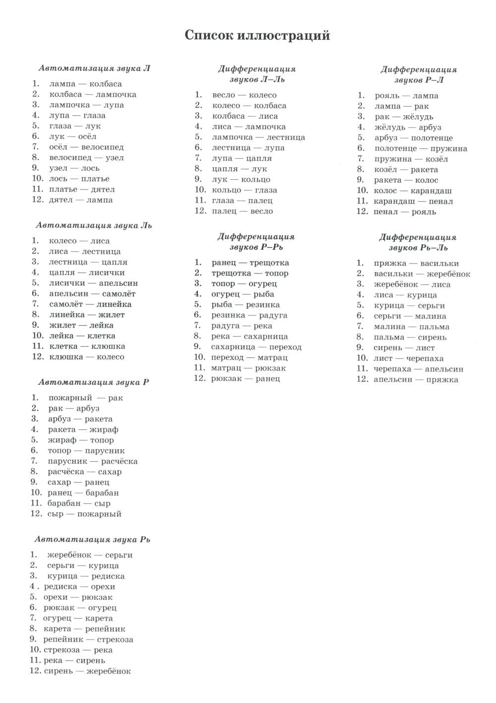 Цепочки слов на сонорные звуки Л,Ль,Р,Рь. Настольные логопедические игры для автоматизации и дифференциации звуков у детей 5-7 лет