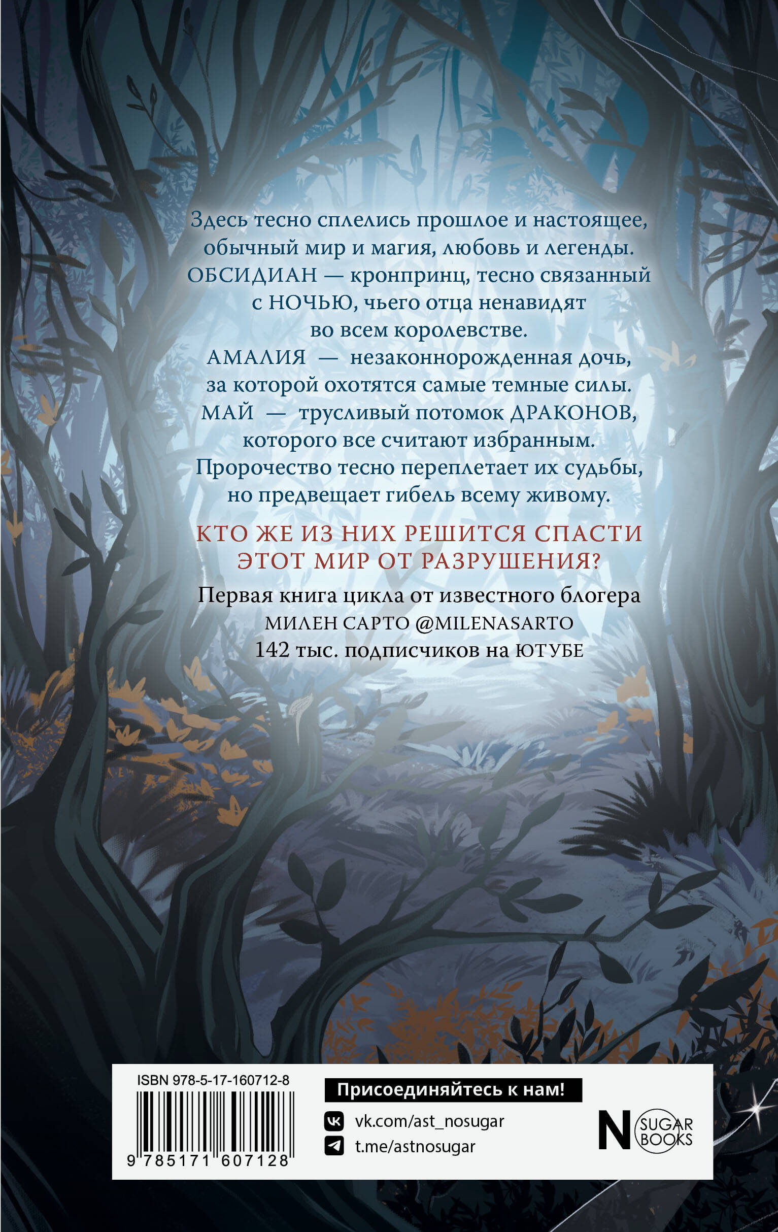 Здесь тесно сплелись прошлое и настоящее, обычный мир и магия, любовь и легенды. Обсидиан - кронпринц, тесно связанный с Ночью, чьего отца ненавидят во всем королевстве. Амалия - незаконнорожденная дочь, за которой охотятся самые темные силы. Май - трусливый потомок Драконов, которого все считают избранным. Пророчество тесно переплетает их судьбы, но предвещает гибель всему живому. Кто же из них решится спасти этот мир от разрушения? Первая книга цикла от известного блогера Милен Сарто @MilenaSarto‧142 тыс. подписчиков на Ютубе| Издательство | Издательство "АСТ" |