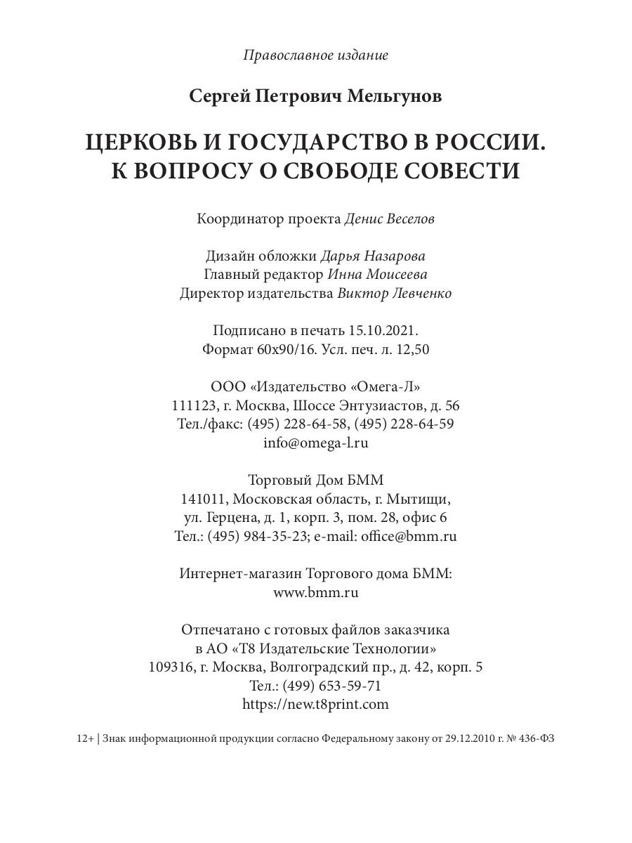 Аннотация: Церковь и государство в России. К вопросу о свободе совести (репринтное изд.)