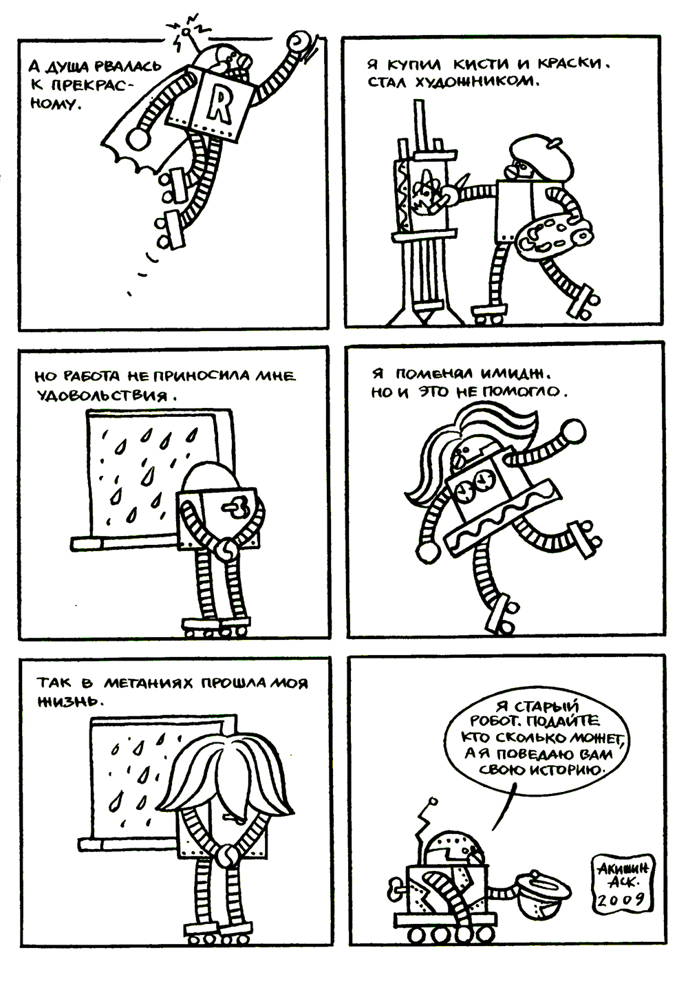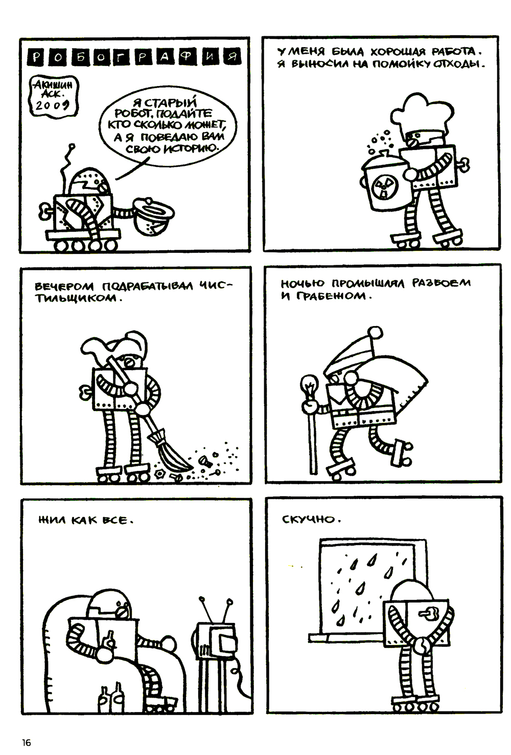 Аскольд Акишин - мастер отечественного комикса. Начав рисовать комиксы в 1985 году, Аскольд рисует их и сейчас, когда многие коллеги-ровесники уже «отошли от пера». До сих пор автор предпочитает рисовать традиционно на бумаге, пером и тушью, поэтому графика при своей академичности сохраняет живость. Красной линией через творчество Аскольда Акишина проходят темы таинственности нашего мира и пугающей неизвестности судьбы для простого человека. Акишин интересен многогранностью своих историй: от серьезных сложнографических документальных зарисовок о войне до практически «палочных человечков» в «Сказках о будущем», от повседневности до фольклора, от автобиографии до сомнамбулических путешествий и фантастики. В двух внушительных томах спрессовано 30 лет рисования комиксов. Это слепок эпохи, своеобразный «документ времени». Настоящий срез независимого российского комикса с 1990-х до наших дней.