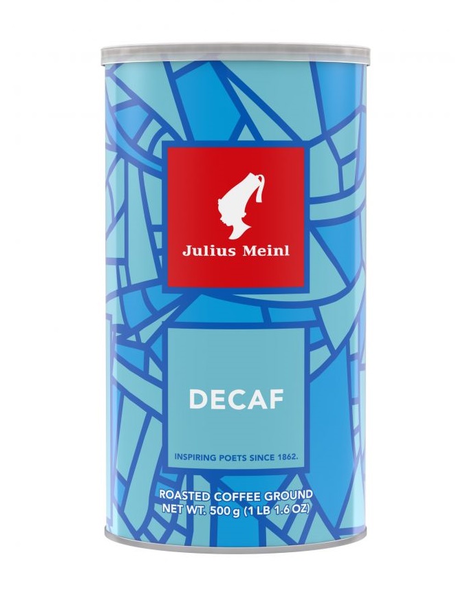 Julius Meinl coffee container filled with 500g ground Vienna Decaf Blend.