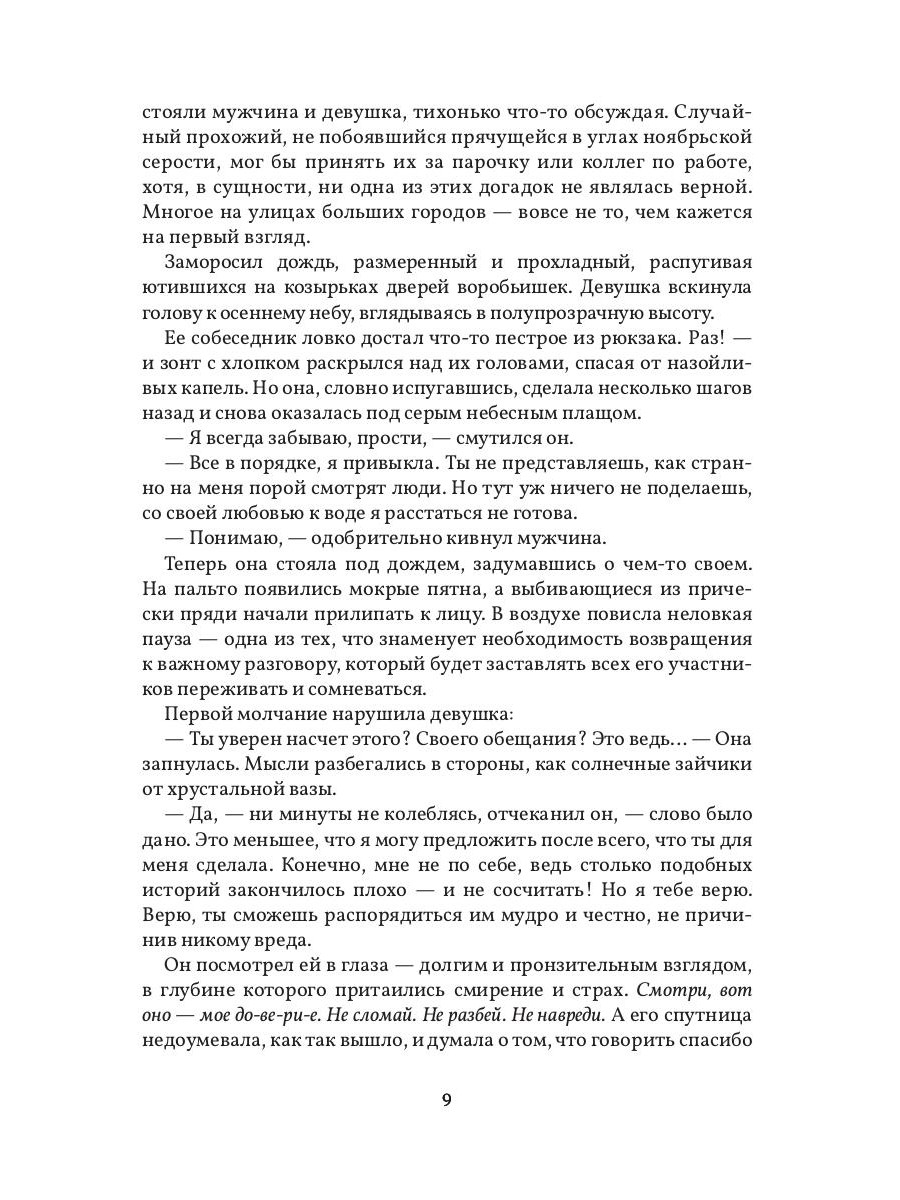Что же происходит в незнакомом городе? Смотри, слушай и подмечай. Письма, двери, обрывки легенд - все сплетается в одну историю. Очередной учебный год встречает молодого студента чередой неудач. Загадочный продавец из чайной лавочки однажды дал слово, и теперь пришло время держать ответ. Послания, адресованные тихой девушке с нежным голосом, несут в себе угрозу - темную, почти осязаемую. А ловкий аферист, оказавшийся случайным участником событий, как водится, ищет лишь выгоды. Устраивайся поудобнее, поверь в чудо, и пусть в чашке растворится небесная синева.