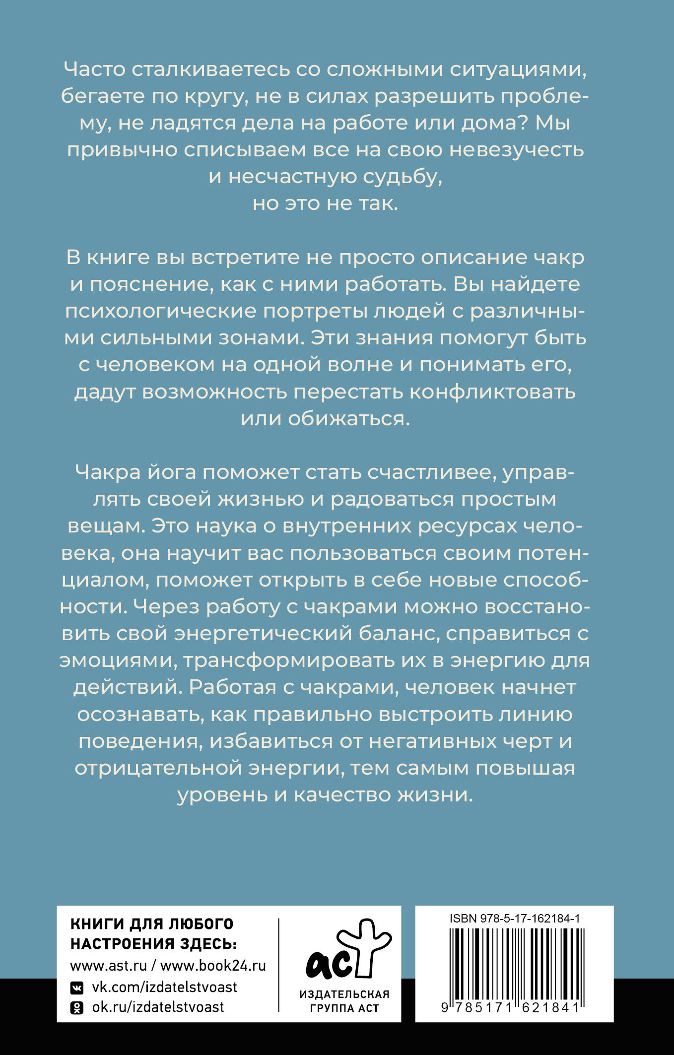 Часто сталкиваетесь со сложными ситуациями, бегаете по кругу, не в силах разрешить проблему, не ладятся дела на работе или дома? Мы привычно списываем все на свою невезучесть и несчастную судьбу, но это не так. В книге вы встретите не просто описание чакр и пояснение, как с ними работать. Вы найдете психологические портреты людей с различными сильными зонами. Эти знания помогут быть с человеком на одной волне и понимать его, дадут возможность перестать конфликтовать или обижаться. Чакра йога поможет стать счастливее, управлять своей жизнью и радоваться простым вещам. Это наука о внутренних ресурсах человека, она научит вас пользоваться своим потенциалом, поможет открыть в себе новые способности. Через работу с чакрами можно восстановить свой энергетический баланс, справиться с эмоциями, трансформировать их в энергию для действий. Работая с чакрами, человек начнет осознавать, как правильно выстроить линию поведения, избавиться от негативных черт и отрицательной энергии, тем самым повышая уровень и качество жизни.| Издательство | Издательство "АСТ" |