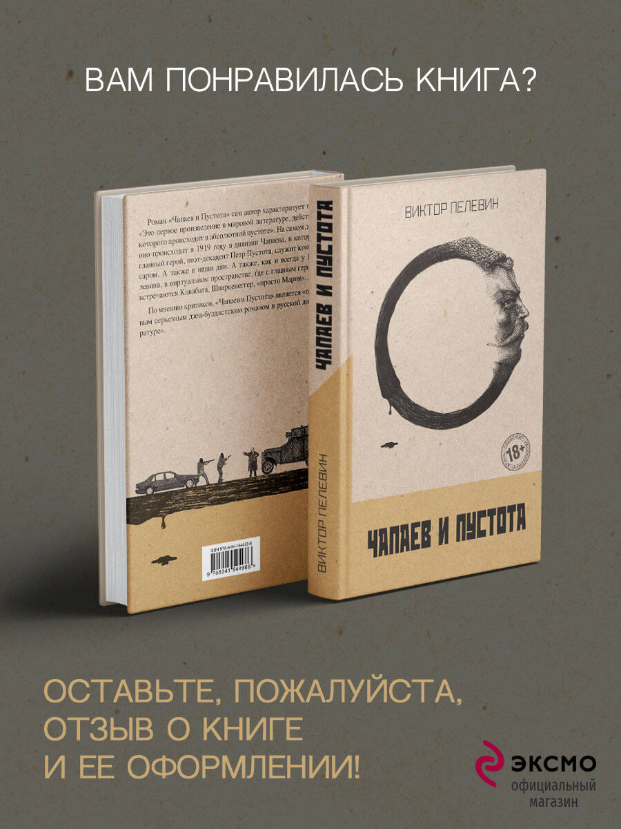 Книга Виктора Пелевина «Чапаев и Пустота» со стикерпаком внутри. Роман «Чапаев и Пустота» сам автор характеризует так: «Это первое произведение в мировой литературе, действие которого происходит в абсолютной пустоте». На самом деле оно происходит в 1919 году в дивизии Чапаева, в которой главный герой, поэт-декадент Петр Пустота, служит комиссаром. А также в наши дни. А также, как и всегда у Пелевина, в виртуальном пространстве, где с главным героем встречаются Кавабата, Шварценеггер, «просто Мария»… По мнению критиков, «Чапаев и Пустота» является «первым серьезным дзен-буддистским романом в русской литературе». По мнению известного критика Василия Владимирского, этот роман входит в Золотую коллекцию ранней прозы Пелевина. - В 2001 году «Чапаев и Пустота» в английском переводе под заголовком «The Clay Machine-Gun» («Глиняный пулемёт») вышел в финал Дублинской литературной премии. - Уже 19 лет существует театральная постановка «Чапаев и Пустота» режиссёра Павла Урсула с Михаилом Ефремовым, Михаилом Полицеймако, Михаилом Крыловым и Павлом Сборщиковым в главных ролях. Издание выходит в уникальном серийном оформлении художника Алексея Клепнева, который специально для каждой книги нарисовал обложку. Переплетный материал - крафтовый шоллерс, эффект модного материала тайвек. Чем больше вы его берете в руки, тем дороже он выглядит, - не портится от использования, очень долговечен.| Издательство | ООО "Издательство "Эксмо" |