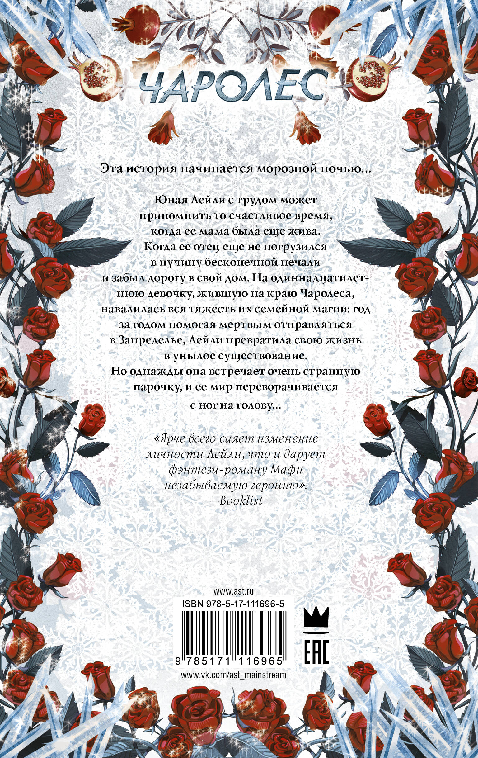 Эта история начинается морозной ночью… Юная Лейли с трудом может припомнить то счастливое время, когда ее мама была еще жива. Когда ее отец еще не погрузился в пучину бесконечной печали и не забыл дорогу в свой дом. На одиннадцатилетнюю девочку, жившую на краю Чаролеса, навалилась вся тяжесть их семейной магии: год за годом помогая мертвым отправляться в Запределье, Лейли превратила свою жизнь в унылое существование. Но однажды она встречает очень странную парочку, и ее мир переворачивается с ног на голову…| Издательство | ИЗДАТЕЛЬСТВО "АСТ" |