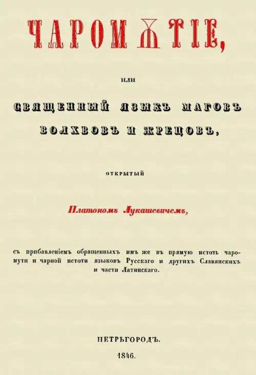 Репринт с издания. Петръгород, 1846. Из Памяти Народа было стёрто имя Платона Лукашевича, его книги были спрятаны в самых недоступных хранилищах библиотек. Выдающийся русский учёный, изучив более 40 языков, сравнив и осознав их и мировую историю, обычаи, песни, легенды, мифы большинства Народов Мира, пришёл к выводу, что от сотворения Мира Род Человеческий имел единый всеобщий язык - ИСТОТНЫЙ. Со временем по разным причинам из него образовались иные языки - ЧАРОМУТНЫЕ. Все чаромутные языки образовывались по одинаковым и неизменным законам. Полная версия книги (переиздана в большом сокращении). Платон Акимович Лукашевич (1809 - 1887) - русский этнограф и лингвист. Учился в Нежинской гимназии, где был товарищем Н. В. Гоголя. Большую часть жизни он посвятил поиску доказательств выдвинутой им теории, что язык древних славян был языком всего первобытного сообщества. Результаты исследований были изложены в 13 книгах, изданных в Санкт-Петербурге, Москве и Киеве (одну из которых мы Вам представляем). Лукашевич утверждал, что языком первобытного мира был славянский язык; затем наступило «чаромутие». Тираж 30 экз. выполнен по технологии print-on-demand.