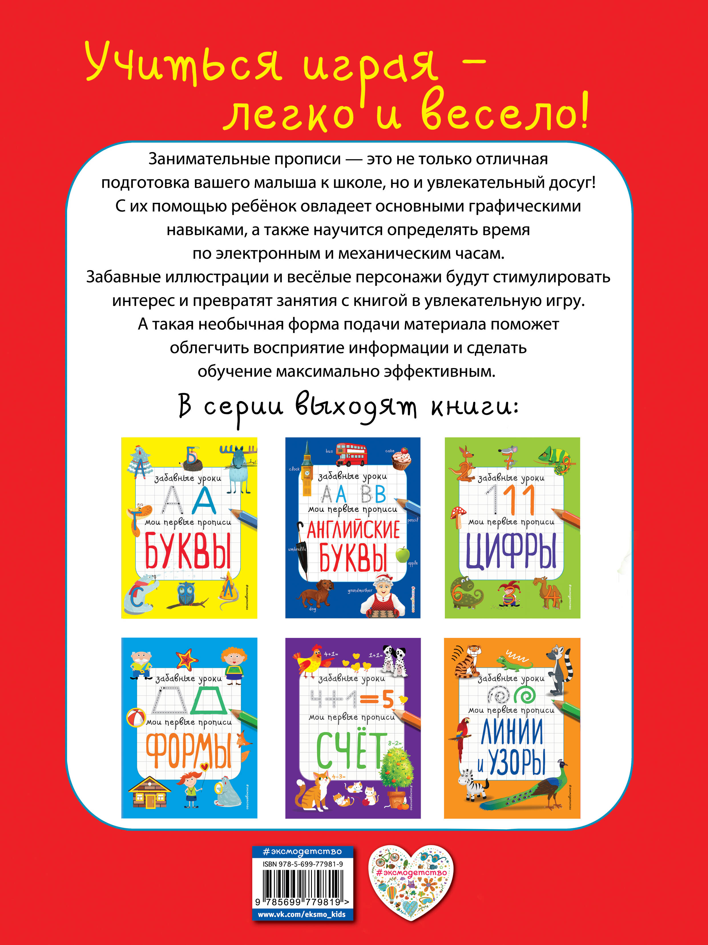 Занимательные прописи - это не только отличная подготовка ребенка к школе, но и полезный, увлекательный досуг! С их помощью ребенок сможет, играя, развить мелкую моторику и графические навыки, а также научиться определять время по часам, развить креативность и творческие способности. Забавные иллюстрации, которые малыш должен дорисовать, будут стимулировать интерес ребенка и превратят занятия в увлекательную игру. А такая необычная форма подачи материала поможет максимально эффективно подготовить руку к письму.| Издательство | ООО "Издательство "Эксмо" |