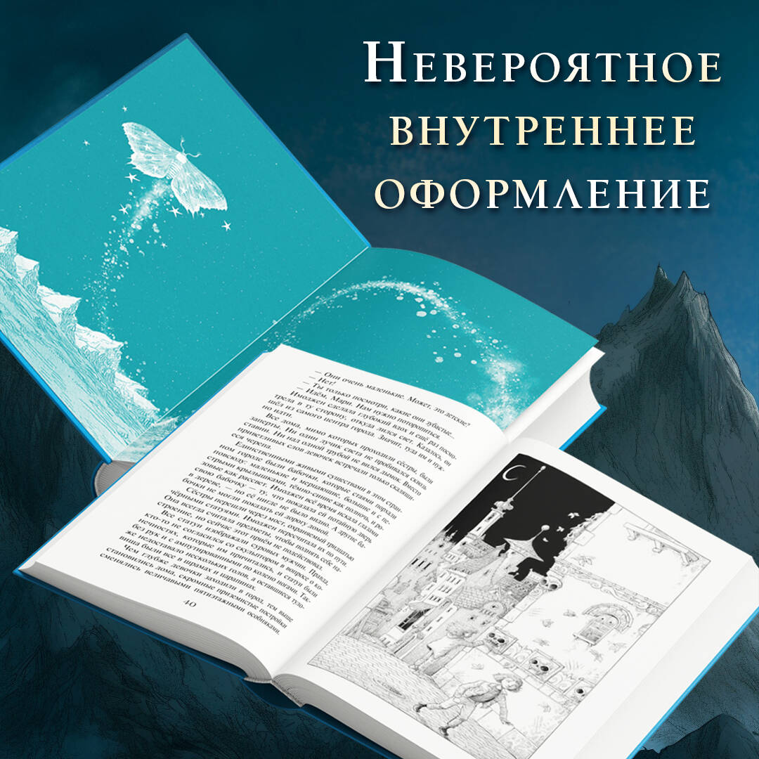 Суперновинка! Первая книга новой захватывающей трилогии «Часы звезд». Немного сумасшедшее подростковое фэнтези для фанатов «Коралины» и других книг Нила Геймана. Имоджен и Мари попадают в волшебный мир через дверь в дереве и оказываются в ловушке. Одни в страшном и незнакомом королевстве, которое никто не может покинуть! И теперь их может спасти только главный злодей… Лишь он - ужасный и кровожадный Модри Краль, король монстров, ненавидящий людей, знает, как сёстрам вернуться домой... Удивительные герои: трусливый принц, который никогда не покидал своего замка. Знаменитый охотник, который никогда в своей жизни не ходил на охоту. Гора, обладающая собственным сердцем. Волшебные часы, которые предсказывают будущее. А также скреты - монстры, охотящиеся на людей. Множество атмосферных чёрно-белых иллюстраций от известного художника Криса Ридделла. Книга понравится поклонникам «Хроник Нарнии», а также серий «Зильбер» и «Сага о семье Игиби».