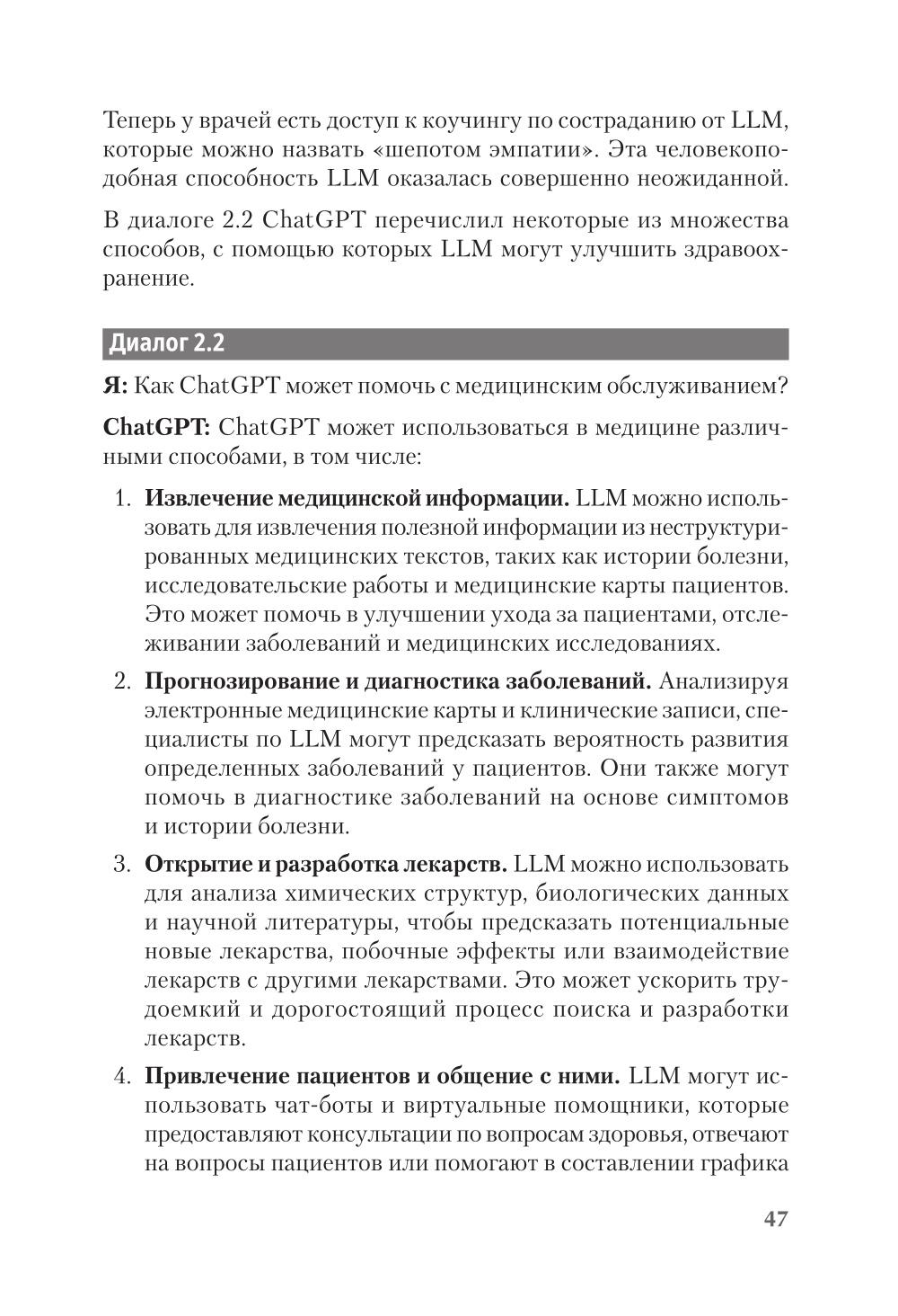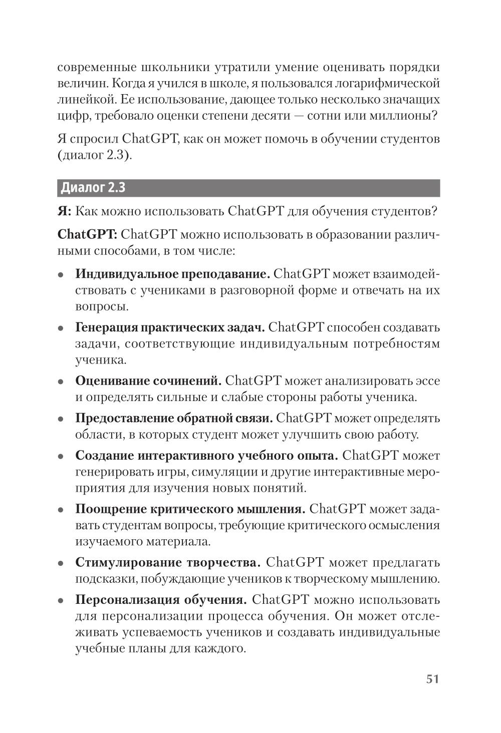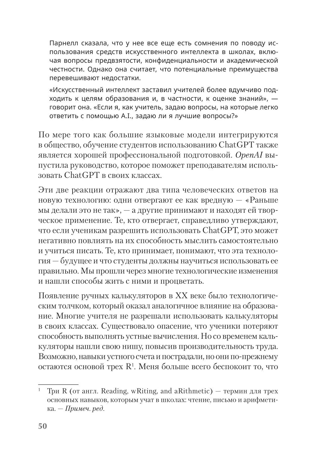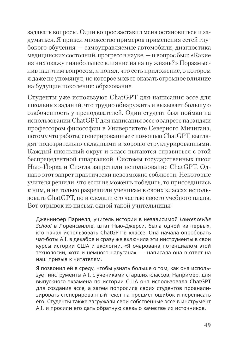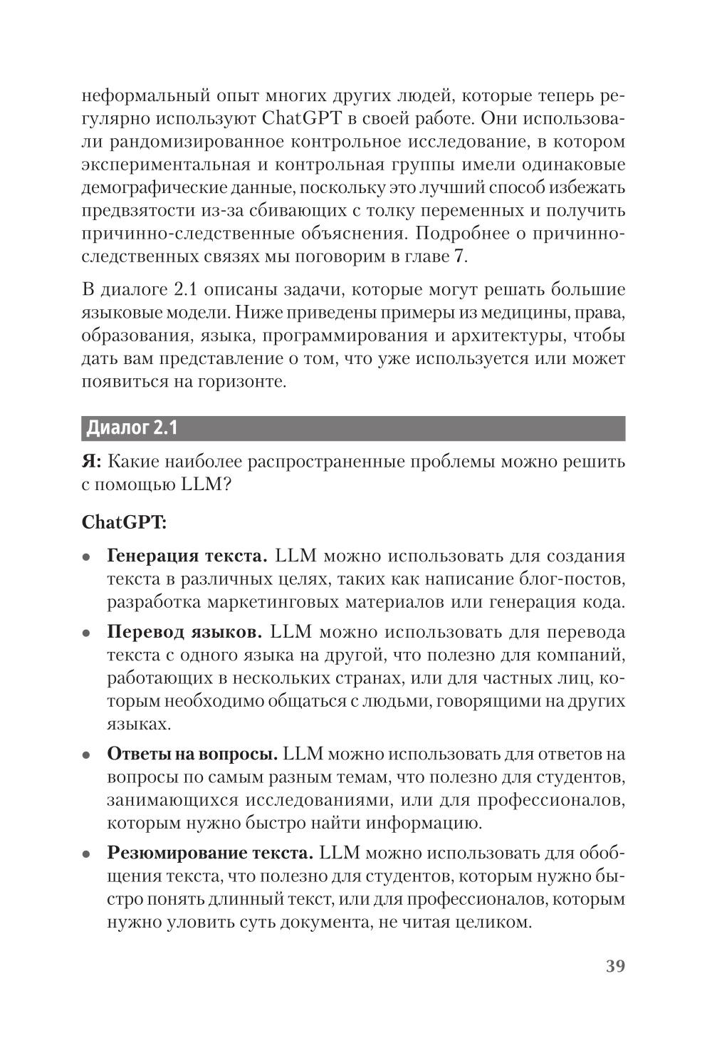 В книге «ChatGPT и будущем искусственного интеллекта» Терренс Сейновски предлагает детальное исследование больших языковых моделей (LLM), таких как ChatGPT, и того, что их ждет в будущем. Как мы должны понимать LLM? Действительно ли эти языковые модели осознают, что они говорят? Возможно ли, что то, что кажется интеллектом в LLM, всего лишь зеркало, отражающее интеллект интервьюера? В этой книге Сейновски, пионер вычислительных подходов к пониманию функций мозга, отвечает на все наши насущные вопросы об этой удивительной новой технологии. Сейновски начинает с описания дебатов, связанных с пониманием языка LLM, и исследует понятия «мышление» и «интеллект». Затем он глубоко погружается в историческую эволюцию языковых моделей, уделяя особое внимание роли технологии трансформеров, взаимосвязи между вычислительной мощностью и размером модели, а также сложной математике, формирующей LLM. Сейновски также раскрывает исторические корни LLM и обсуждает потенциальное будущее искусственного интеллекта, уделяя особое внимание моделям следующего поколения, вдохновленным природой, и важности разработки энергоэффективных технологий.| Издательство | Питер |
