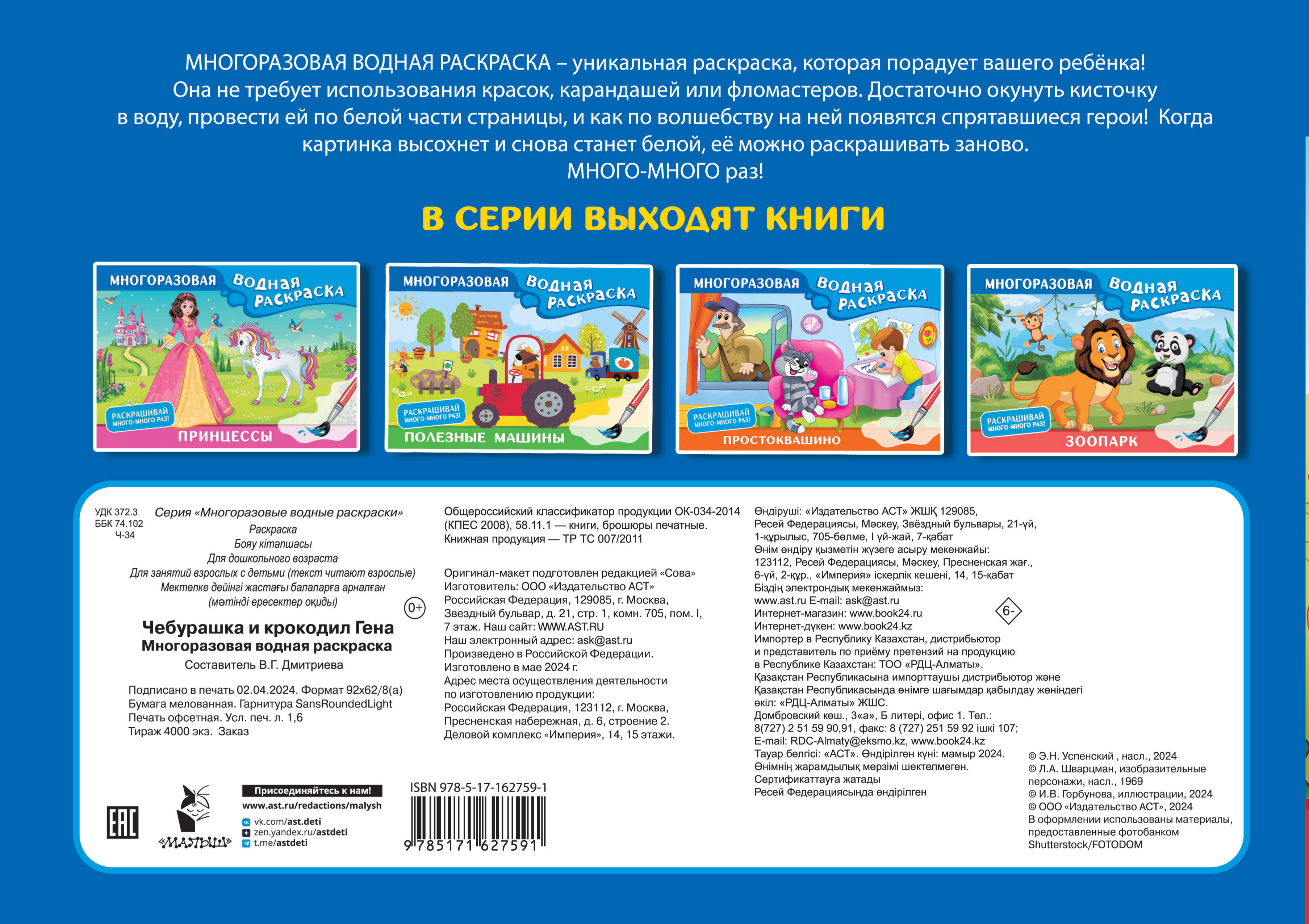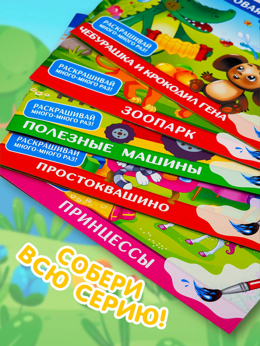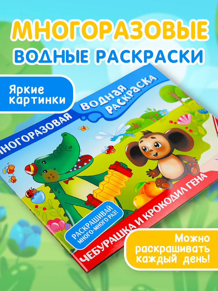 Аннотация: Чебурашка и Крокодил Гена. Многоразовая водная раскраска