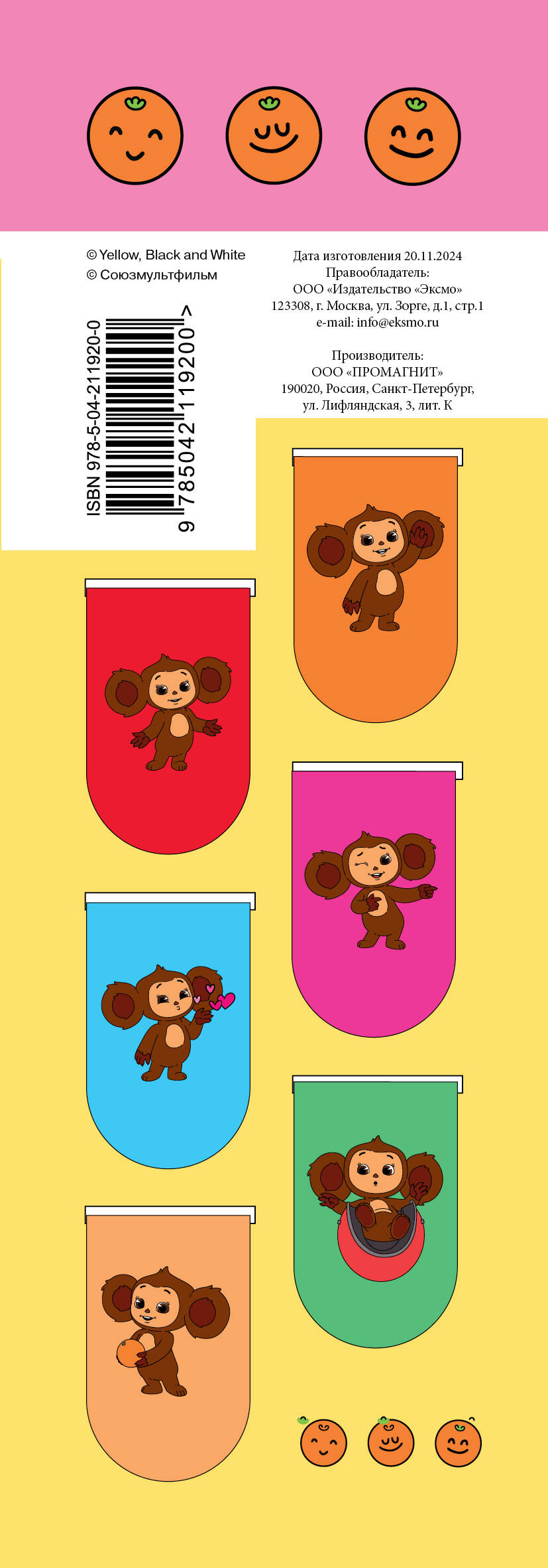 Безусловно, все знают уже ставшего легендарным советского героя с пушистыми ушками! Милого зверька невозможно не полюбить, это знает уже не одно поколение! А если вдруг вы не знаете, то познакомьтесь с Чебурашкой, и вы точно его полюбите! Позвольте мохнатому зверьку быть вместе с вами, чтобы познакомиться поближе! Те, кто любит читать книги, понимают необходимость закладки: благодаря ей легко находится нужная страница, поэтому не нужно тратить время на ее поиски. Чаще всего книгочеи вставляют в книгу то, что попадается под руку - чеки, листок бумаги, обертку или карандаш. Но ведь гораздо приятнее пользоваться красиво украшенной закладкой. Стильные и милые закладки с любимцем всех детей и взрослых Чебурашкой станут украшением любой книги и оригинальным подарком для каждого поклонника маленького ушастого зверька! Для кого это: - для любителей чтения; - для любителей аниме; - для любителей стиля в мелочах. Фишки: - оригинальный дизайн; - удобный формат - позволяет выделять сразу несколько страниц.| Издательство | ООО "Издательство "Эксмо" |