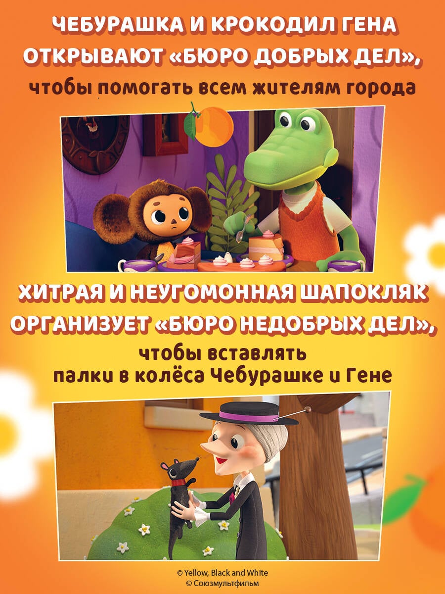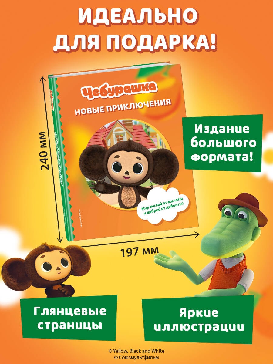 Мир милей от милоты и добрей от доброты! Новые приключения Чебурашки и его друзей теперь в книжном формате! Чебурашка и крокодил Гена решили, что доброты много не бывает, и открыли Бюро Добрых Дел! Но коварная Шапокляк не дремлет - она тут же основала свое Бюро Недобрых Дел. Что задумала хитрая старушка вместе с крыской Лариской? Читайте в новых приключениях! Эта книга - не просто чтение. Это возвращение в детство для взрослых и знакомство с легендой для малышей. Чебурашка учит доброте, дружбе и тому, что вместе можно преодолеть любые трудности. Издание прекрасно подойдет в качестве подарка детям 5-7 лет, ведь приятно дарить книгу большого формата с яркими кадрами из мультсериала на мелованной глянцевой бумаге.| Издательство | ООО "Издательство "Эксмо" |