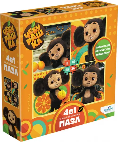 Набор пазлов 4 в 1 - это комплект пазлов с разной элементностью, включающий в себя головоломки из 9, 16, 25 и 36 элементов, объединенных общей тематикой. Набор пазлов с легендарным Чебурашкой понравится любому ребенку! Постепенно усложняя сборку пазла от 9 элементов до 36 элементов, ребенок научится внимательности, концентрации, а также сможет развить мелкую моторику.