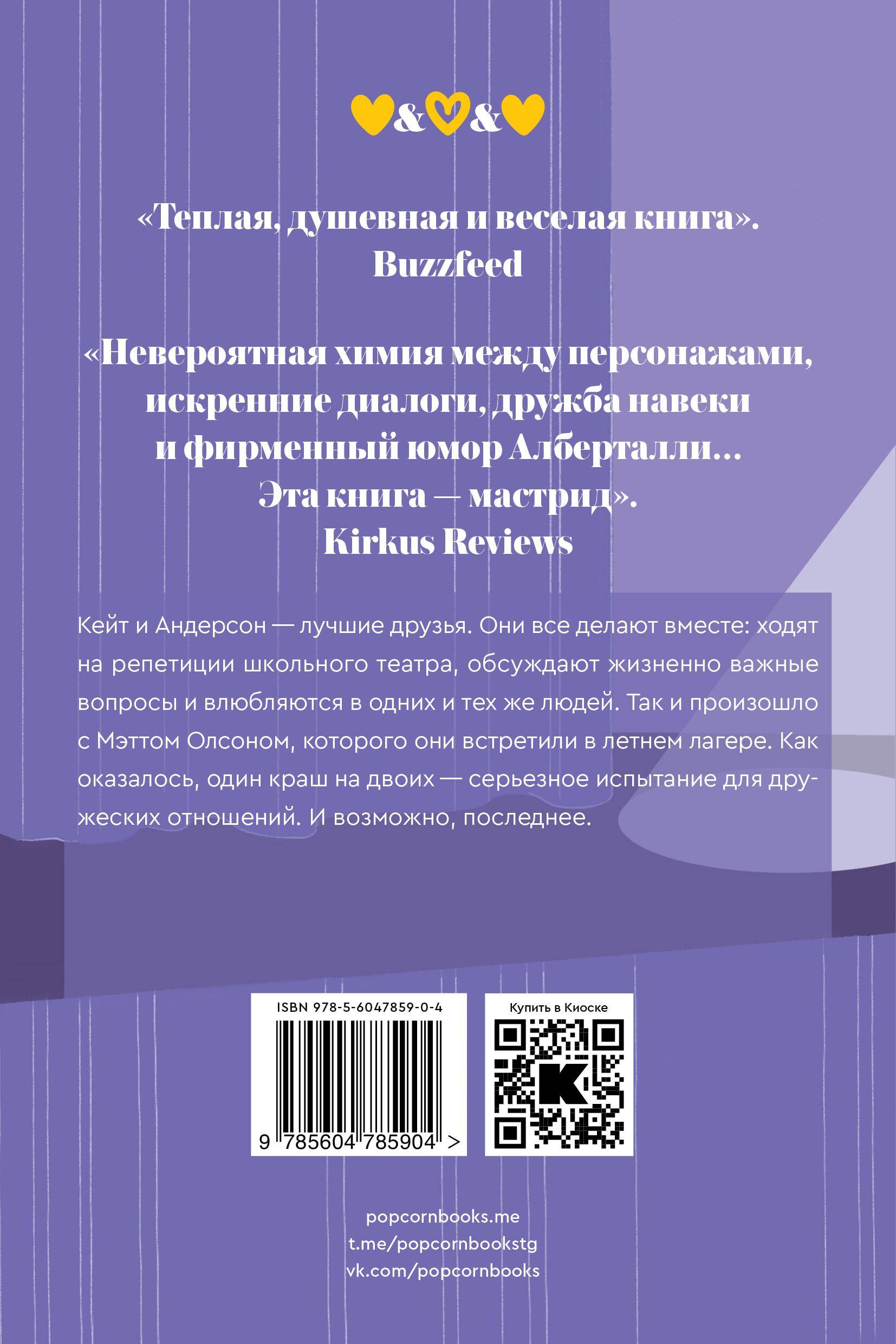 Кейт и Андерсон - лучшие друзья. Они все делают вместе: ходят на репетиции школьного театра, обсуждают жизненно важные вопросы и влюбляются в одних и тех же людей. Так и произошло с Мэттом Олсоном, которого они встретили в летнем лагере. Как оказалось, один краш на двоих - серьезное испытание для дружеских отношений. И возможно, последнее.