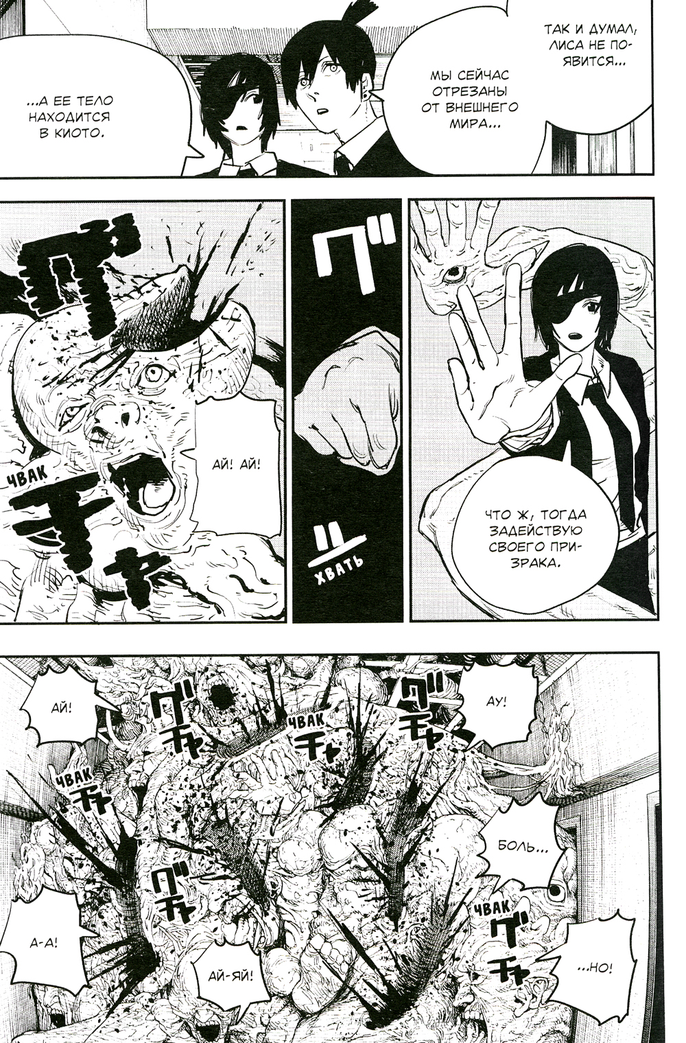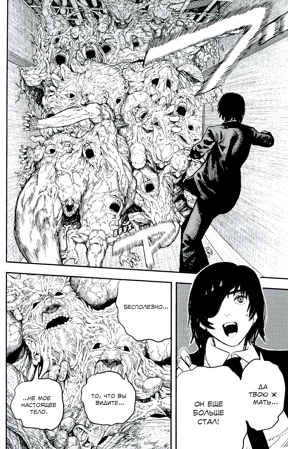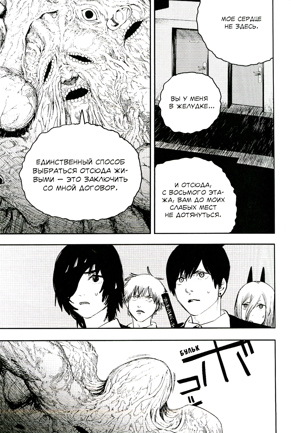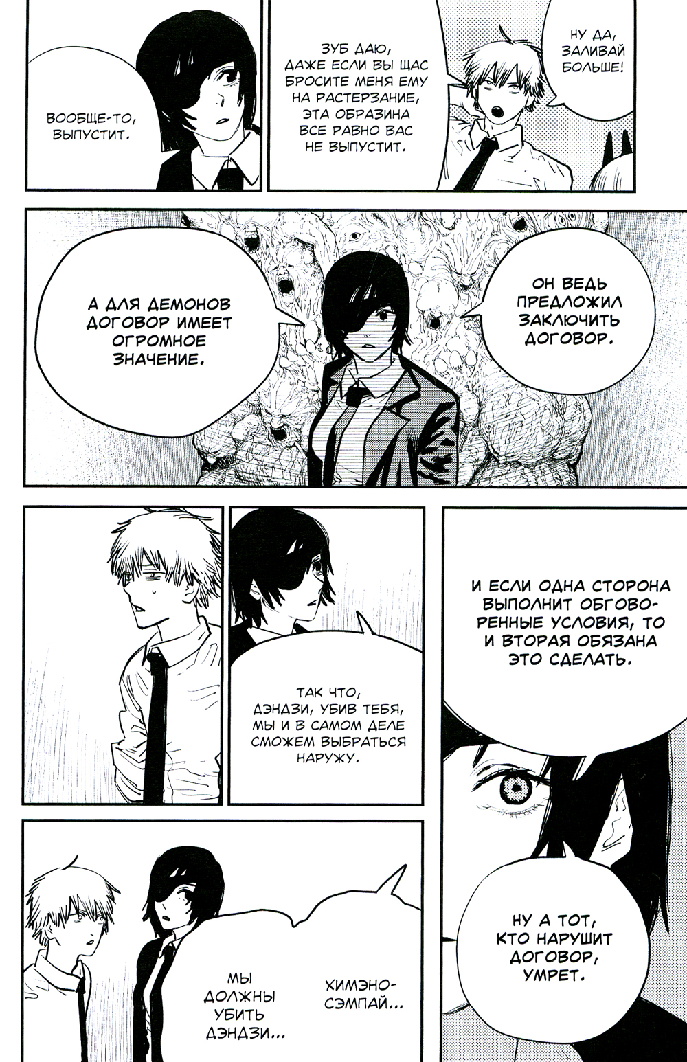 Дэндзи и его коллеги выезжают на вызов в отель "Морин", где оказываются заперты в бесконечной временной петле на восьмом этаже: хитроумная ловушка, которую подстроил демон, не позволяет охотникам выбраться наружу. Ситуация не сулит ничего хорошего... Однако чудовище предлагает сделку: если ему скормят Дэндзи, оно освободит весь отряд. Какое же решение примут коллеги охотника-новобранца? Обменяют ли они жизнь одного человека на жизнь всей команды? И как в таких обстоятельствах себя поведет сам Дэндзи?..| Издательство | Азбука |