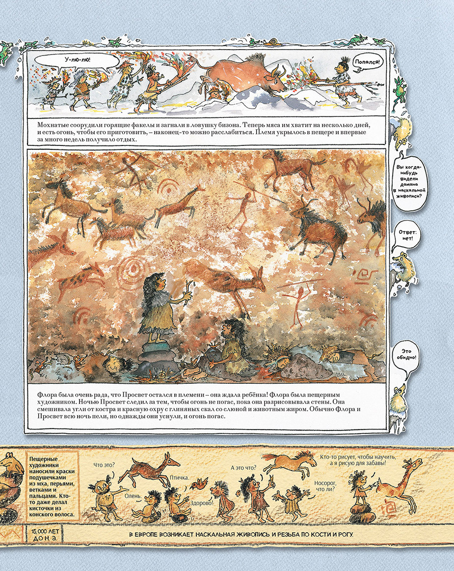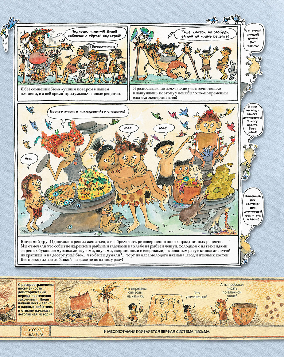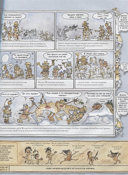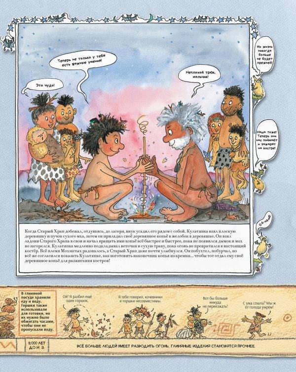 В этой книге читателей ждёт настоящее доисторическое приключение - знакомство с первыми людьми на Земле, из племени Мохнатых. Вы узнаете, как Мохнатые выживали во времена ледникового периода, как впервые добыли огонь, как из кочевников превратились в земледельцев и одомашнили диких животных. Занимательные факты, шутки и любимый детский формат - комиксы - делают эту книгу великолепным пособием по истории человечества.