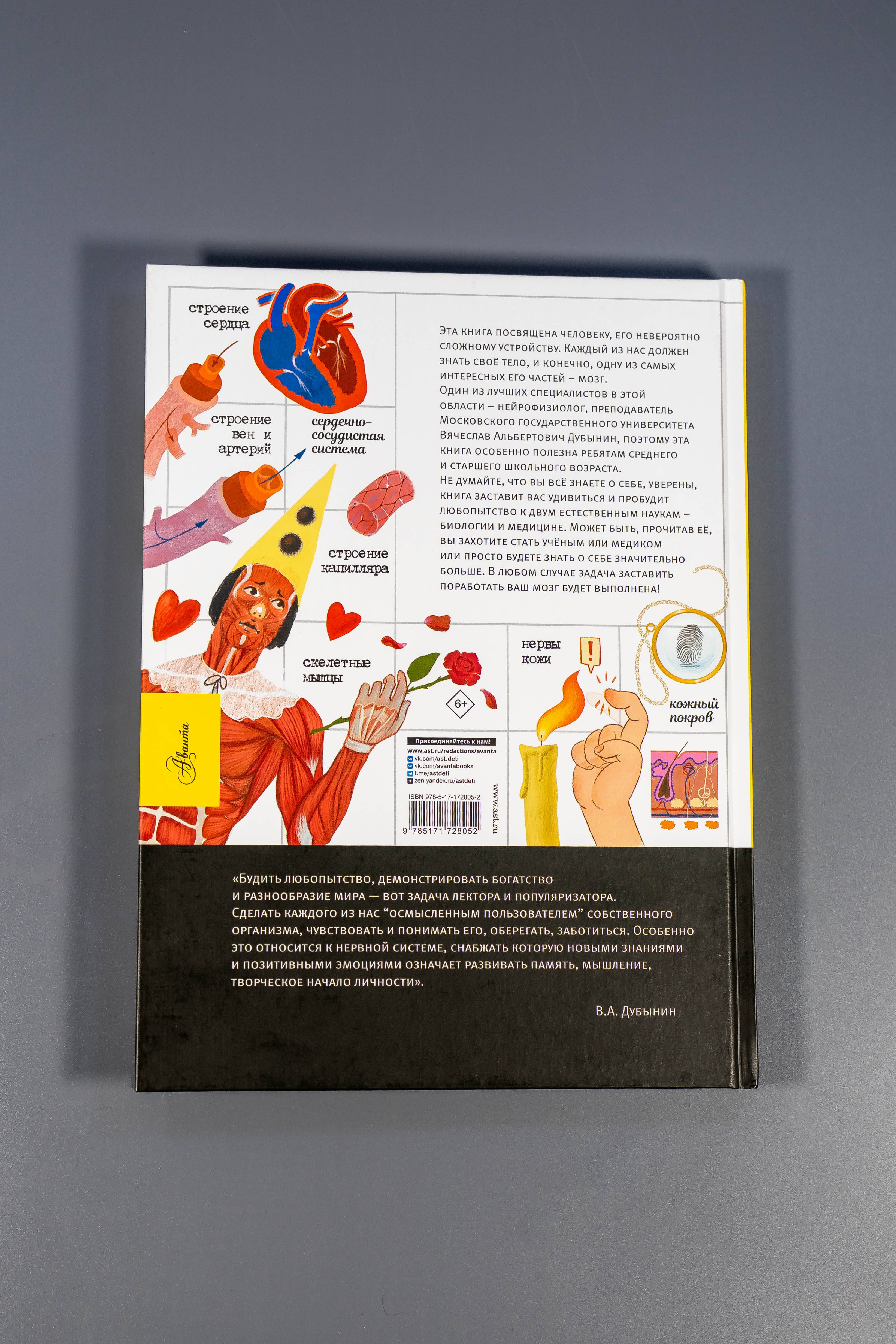 Книга замечательных ученых и популяризаторов науки Вячеслава Дубынина и Игоря Сергеева расскажет юному читателю о самом интересном на свете - о человеке. Изучать тело и мозг человека школьникам помогут и лекции Вячеслава Дубынина, ссылки на которые в виде QR-кодов представлены в книге. Для среднего и старшего школьного возраста.