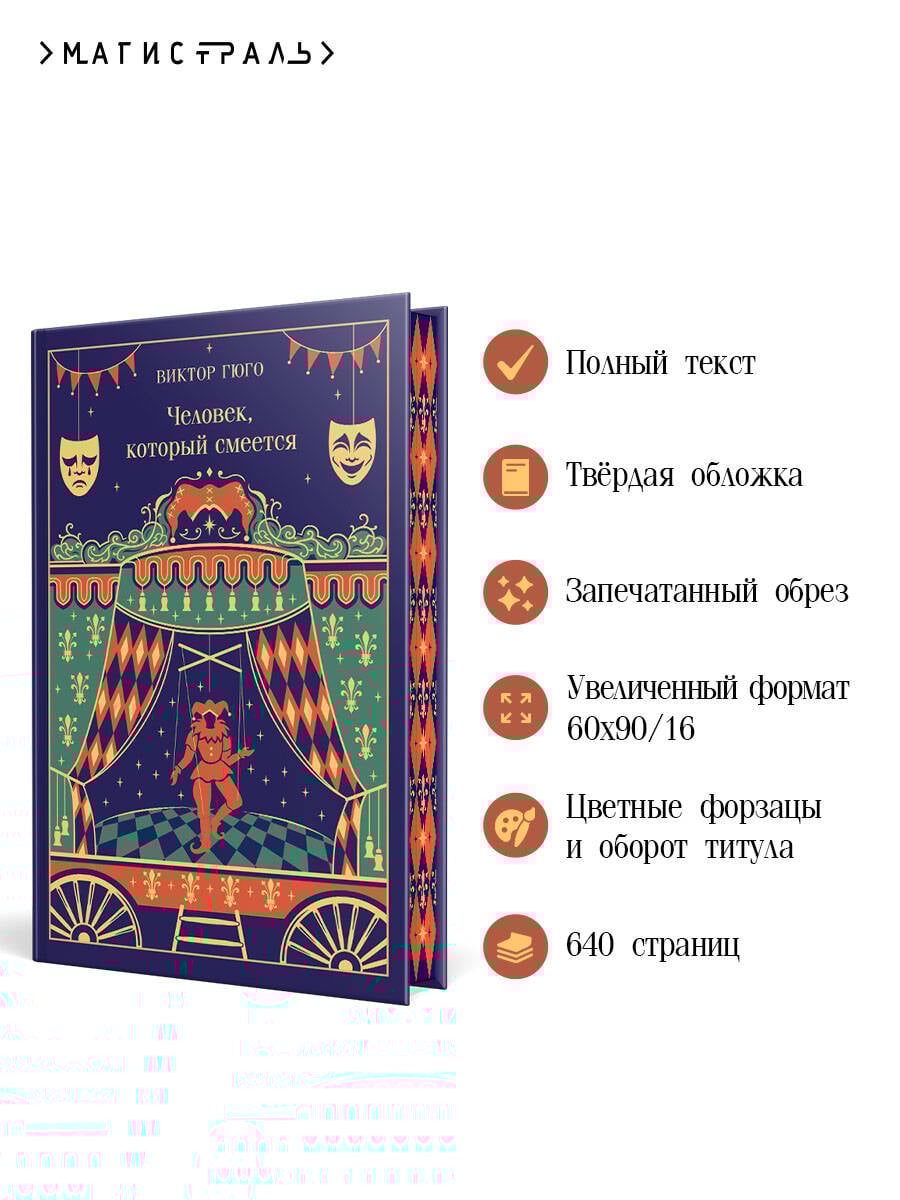 Действие романа Виктора Гюго «Человек, который смеется» происходит в Англии конца XVII - начала XVIII веков. Гуинплен - лорд по рождению, в детстве был продан бандитам-компрачикосам, сделавшим из ребенка ярмарочного шута, вырезав на его лице маску «вечного смеха» (при дворах европейской знати того времени существовала мода на калек и уродов, забавлявших хозяев и гостей, деятельность компрачикосов иногда даже поощрялась). Романтическая история, социальная трагедия, приключения и неожиданные повороты сюжета - в одном из шедевров французской литературы. Изуродованный бандитами в детстве, герой становится шутом и бродягой, но, вопреки всем испытаниям, сохраняет любовь и благородство. Новая серия классики для поклонников «Магистраль. Главный тренд» в твердой обложке. Безупречность стиля, лаконичность, тактильные материалы, цветные форзацы, рисунок на обрезе.| Издательство | ООО "Издательство "Эксмо" |