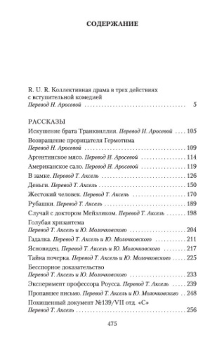 Карел Чапек - один из самых известных чешских писателей, один из основателей совершенно новой ветви в литературе и искусстве XX века, получившей название «фантастического реализма». Он является автором романов, рассказов, пьес, фельетонов, созданных с неистощимой фантазией и блистательным юмором, покоривших сердца читателей многих стран мира. В настоящий сборник вошли лучшие рассказы Чапека, а также фантастическая пьеса «R.U.R.». Именно в ней впервые появляется слово «робот», которое придумал Чапек, и рождается на свет столь знакомый нам сегодня сюжет о восстании машин против людей.