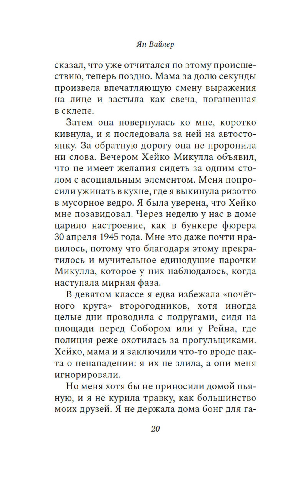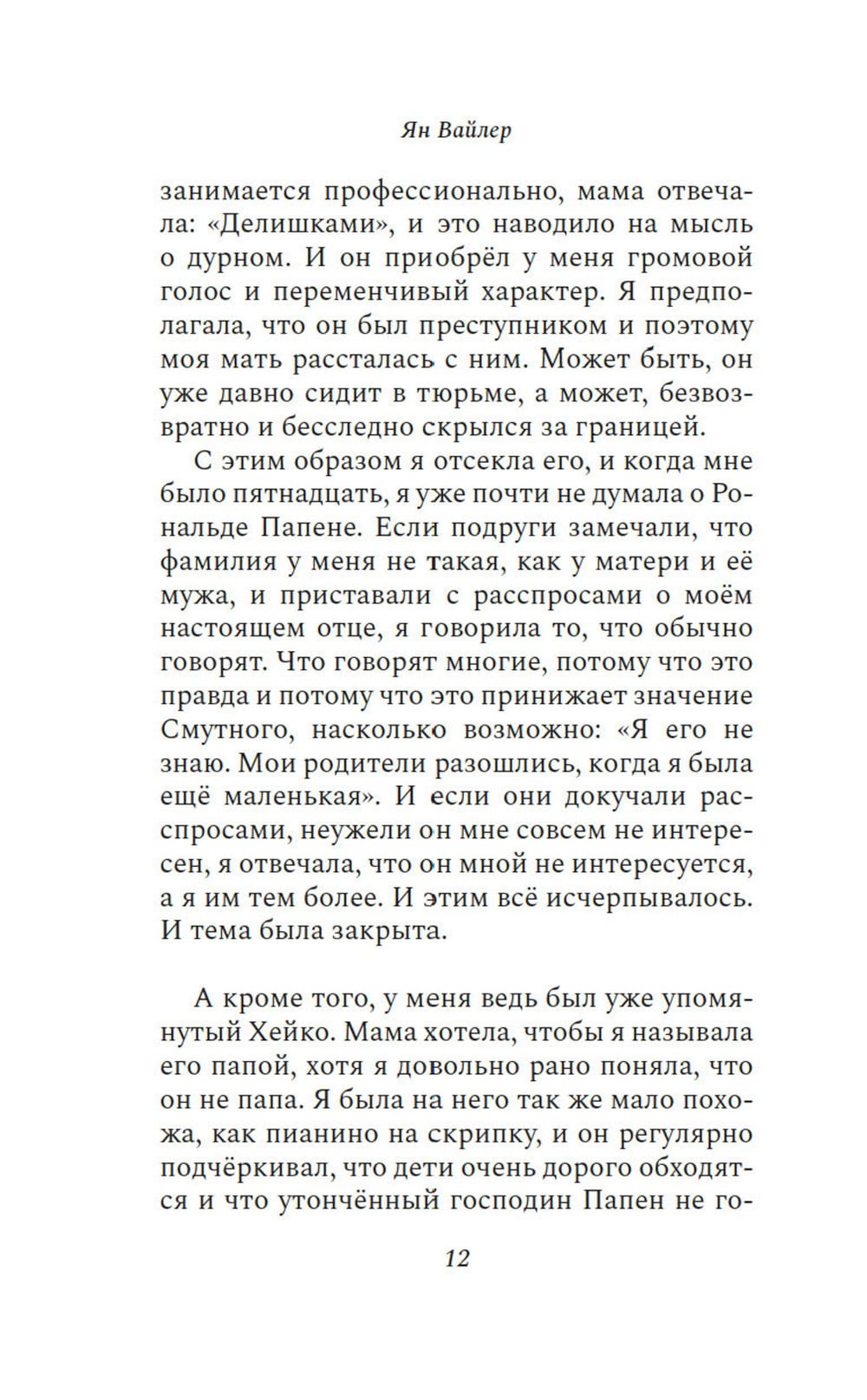 Конфликт отцов и детей стар как мир и описан во множестве книг. Но, оказывается, и здесь можно сказать новое слово. Ян Вайлер убедительно это доказывает, рассказывая историю Ким и её отца - Рональда Папена, которого она первые пятнадцать лет своей жизни знала по старой, нечёткой фотографии в семейном альбоме. Хотела ли она с ним познакомиться? Вряд ли - ведь она о нём ничего не знала. Была ли она рада, когда мать отправила ее к отцу в качестве наказания? Тоже вряд ли. Да и кто рад наказанию. И, наконец, могла ли она предположить, что знакомство с этим странным человеком, самым, наверное, неудачливым в мире торговцем навесами-маркизами, станет значительным событием в ее жизни? Да что там - перевернёт жизнь на сто восемьдесят градусов.