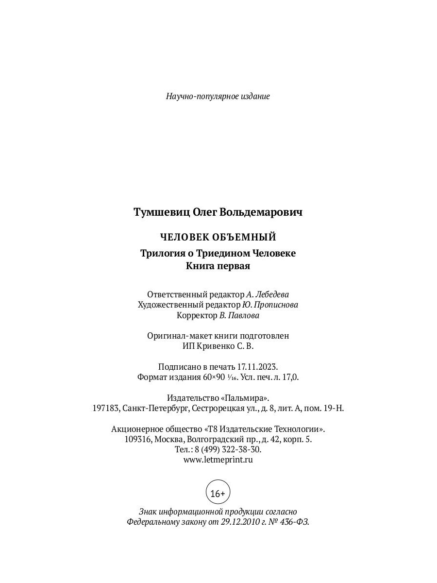 Аннотация: Человек объемный. Трилогия о Триедином Человеке. Кн. 1