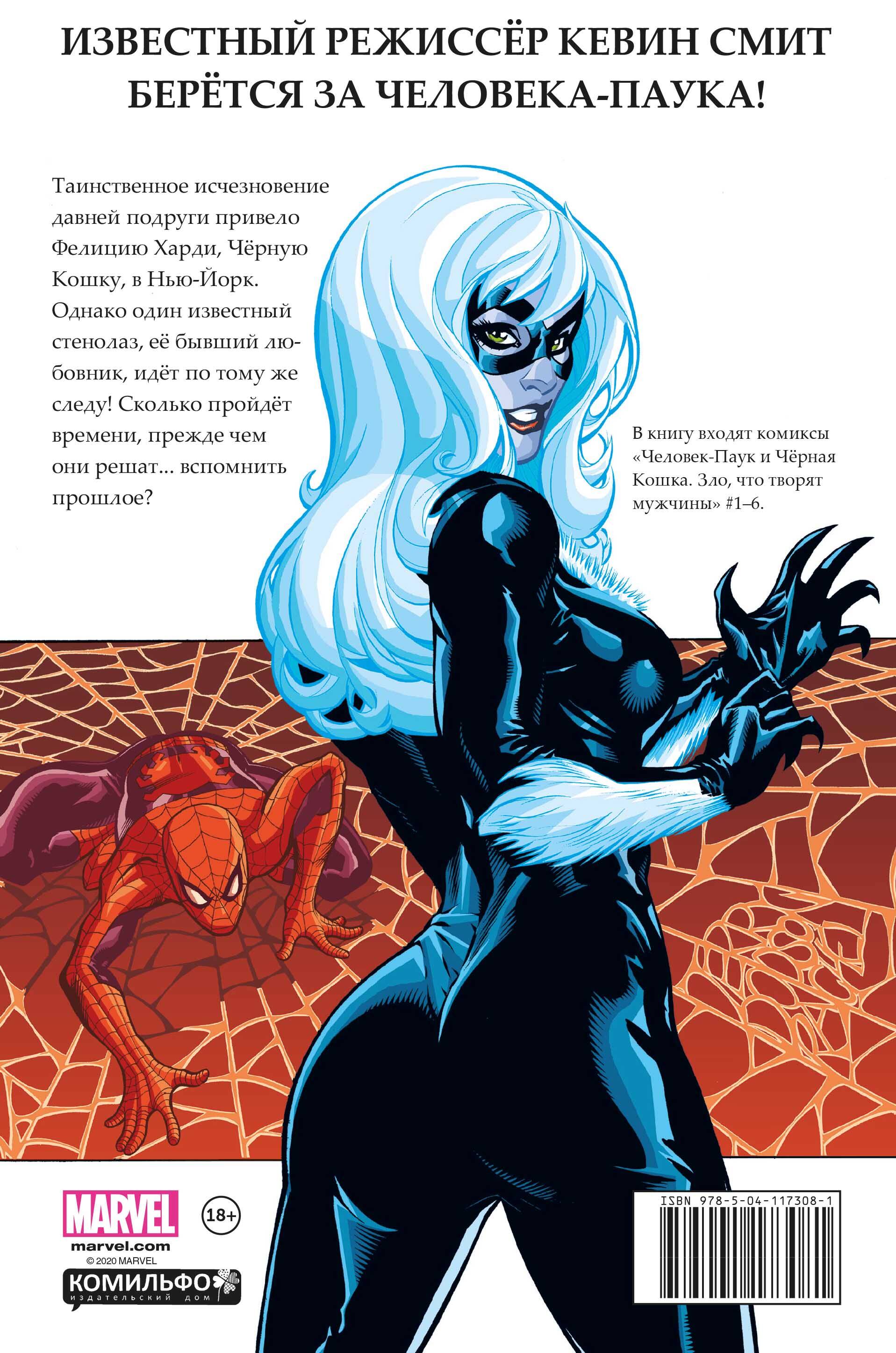 Известный режиссёр Кевин Смит берётся за Человека-паука! Таинственное исчезновение давней подруги привело Фелицию Харди, Чёрную Кошку, в Нью-Йорк. Однако один известный стенолаз, её бывший любовник, идёт по тому же следу! Сколько пройдёт времени, прежде чем они решат... вспомнить прошлое? Неподражаемый Кевин Смит (фильмы «Клерки», «Догма», «Джей и Молчаливый Боб наносят ответный удар», комикс «Сорвиголова. Дьявол-хранитель») ловко вплетает в стандартный супергеройский сюжет важные социальные темы, от участия высокопоставленных политиков и звёзд в торговле наркотиками до вопроса отсутствия поддержки жертв сексуального насилия. Это не совсем то, что вы ожидаете увидеть в комиксе, обложка которого предлагает вам очередные приключения Человека-паука в команде с другим персонажем, правда? Нестандартный сюжет отлично дополняет работа потрясающих Терри и Рэйчел Додсон («Звёздные войны. Принцесса Лея», «Рыцари Marvel. Человек-паук»), которые одинаково хорошо изображают и сцены поединков, и напряженные диалоги между героями. В книгу входят комиксы «Человек-Паук и Чёрная Кошка. Зло, что творят мужчины» #1-6.| Издательство | ООО "Издательство "Эксмо" |