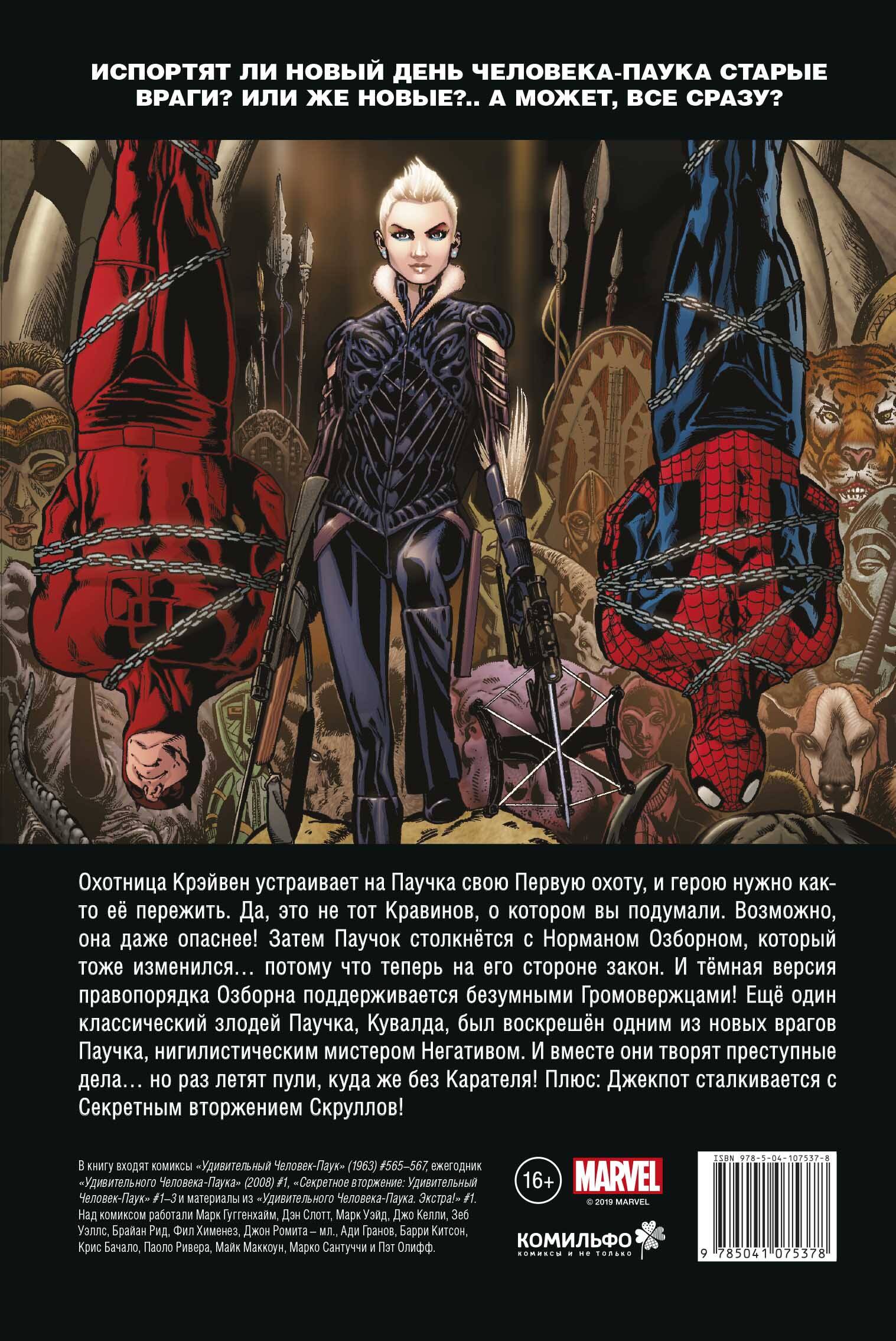ИСПОРТЯТ ЛИ НОВЫЙ ДЕНЬ ЧЕЛОВЕКА-ПАУКА СТАРЫЕ ВРАГИ? ИЛИ ЖЕ НОВЫЕ?.. А МОЖЕТ, ВСЕ СРАЗУ? Охотница Крэйвен устраивает на Паучка свою первую охоту, и герою нужно как-то её пережить. Да, это не тот Кравинов, о котором вы подумали. Возможно, она даже опаснее! Затем Паучок столкнётся с Норманом Озборном, который тоже изменился… потому что теперь на его стороне закон. И тёмная версия правопорядка Озборна поддерживается безумными Громовержцами! Ещё один классический злодей Паучка, Кувалда, был воскрешён одним из новых врагов Паучка, нигилистическим мистером Негативом. И вместе они творят преступные дела… но раз летят пули, куда же без Карателя! Плюс: Джекпот сталкивается с Секретным вторжением Скруллов! В книгу входят комиксы «Удивительный Человек-Паук» (1963) #565-567, ежегодник «Удивительного Человека-Паука» (2008) #1, «Секретное вторжение: Удивительный Человек-Паук» #1-3 и материалы из «Удивительного Человека-Паука. Экстра!» #1. Над комиксом работали Марк Гуггенхайм, Дэн Слотт, Марк Уэйд, Джо Келли, Зеб Уэллс, Брайан Рид, Фил Хименез, Джон Ромита - мл., Ади Гранов, Барри Китсон, Крис Бачало, Паоло Ривера, Майк Маккоун, Марко Сантуччи и Пэт Олифф.| Издательство | ООО "Издательство "Эксмо" |