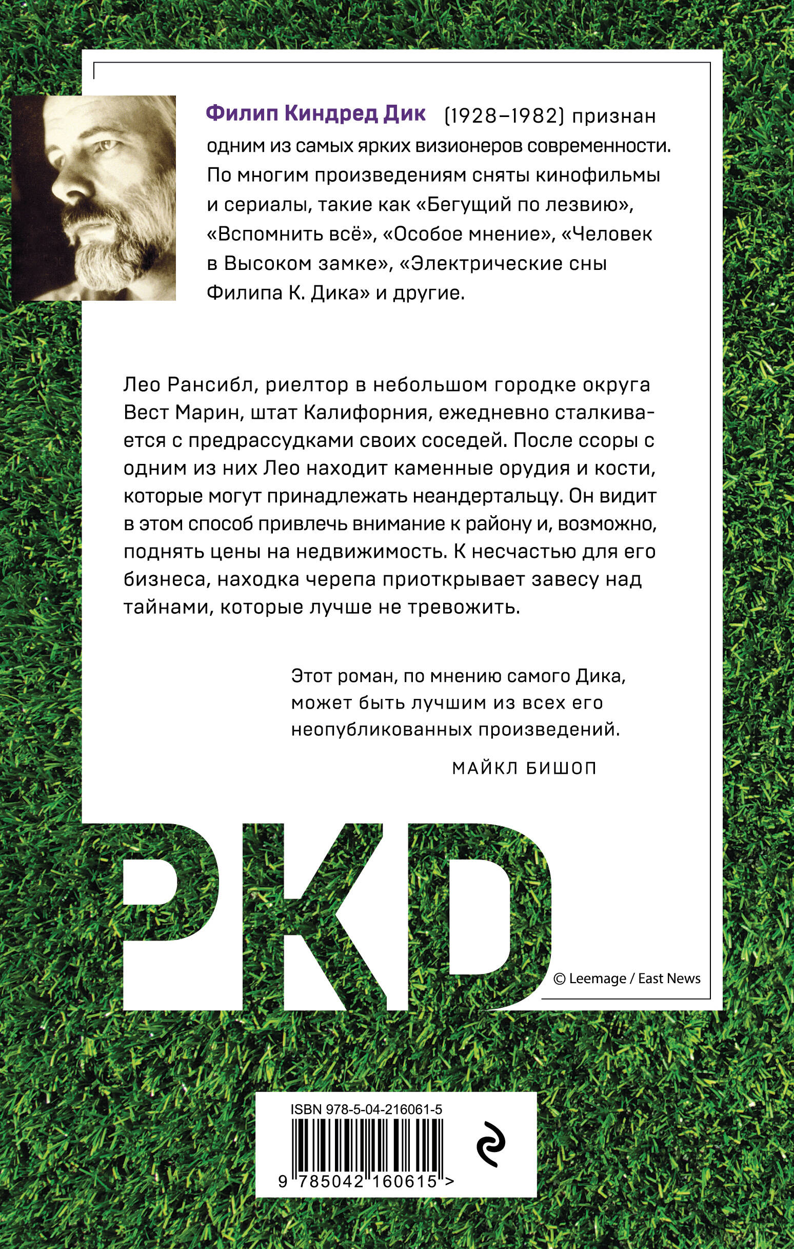 Впервые на русском языке! Исключительный роман Дика, который не вписывается в жанр научной фантастики. В маленьком калифорнийском городке, где недавно поселился агент по недвижимости Лео Рансибл, нет ничего интересного: лишь сплетни соседей, семейные дрязги, расизм и дышащий на ладан водопровод. Правда, иногда школьный учитель, занимаясь любительскими раскопками, находит обсидиановые наконечники стрел индейцев. Идет время, бытовой конфликт плавно перетекает в затаенную вражду, и когда на одном из участков, предназначенном под застройку, находят древние останки индейского поселения, сосед решается на злой розыгрыш над ненавистным чужаком. Но шутка вскрывает проблему, которая грозит всем жителям округа. Местные закрывают глаза, и лишь чужак Лео готов бороться. В романе описывается город, в котором жил сам Филип К. Дик в период своего творческого расцвета, а прототипами героев стали его друзья и соседи. «В 1981 году Филип К. Дик перечитал одиннадцать своих неопубликованных романов и выбрал этот в качестве своего любимого. История рассказывает о необычном риелторе, принципы которого кажутся твердыми и ясными, хотя и несколько эксцентричными. Трагикомедия с участниками, слепо попирающими чувства друг друга». - Locus «Писал ли Филип К. Дик блестящую научную фантастику или уникальные современные романы, он всегда был крупным американским литературным талантом, заслуживающим еще более широкой аудитории, чем та, которой он достиг при жизни. Этот роман, по мнению самого Дика, может быть лучшим из всех его неопубликованных произведений». - Майкл Бишоп| Издательство | ООО "Издательство "Эксмо" |
