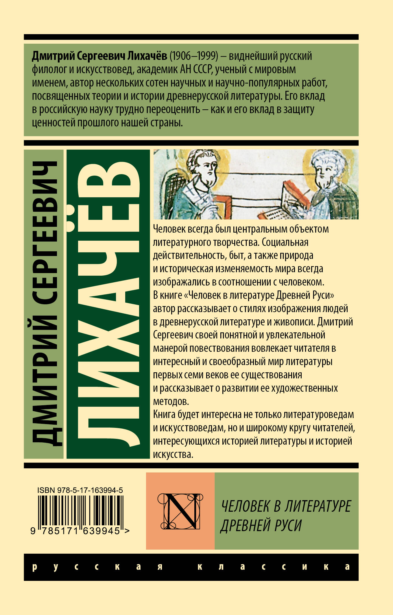 Человек всегда был центральным объектом литературного творчества. Социальная действительность, быт, а также природа и историческая изменяемость мира всегда изображались в соотношении с человеком. В книге "Человек в литературе Древней Руси" автор рассказывает о стилях изображения людей в древнерусской литературе и живописи. Дмитрий Сергеевич своей понятной и увлекательной манерой повествования вовлекает читателя в интересный и своеобразный мир литературы первых семи веков ее существования и рассказывает о развитии ее художественных методов. Книга будет интересна не только литературоведам и искусствоведам, но и широкому кругу читателей, интересующихся историей литературы и историей искусства.| Издательство | Издательство "АСТ" |
