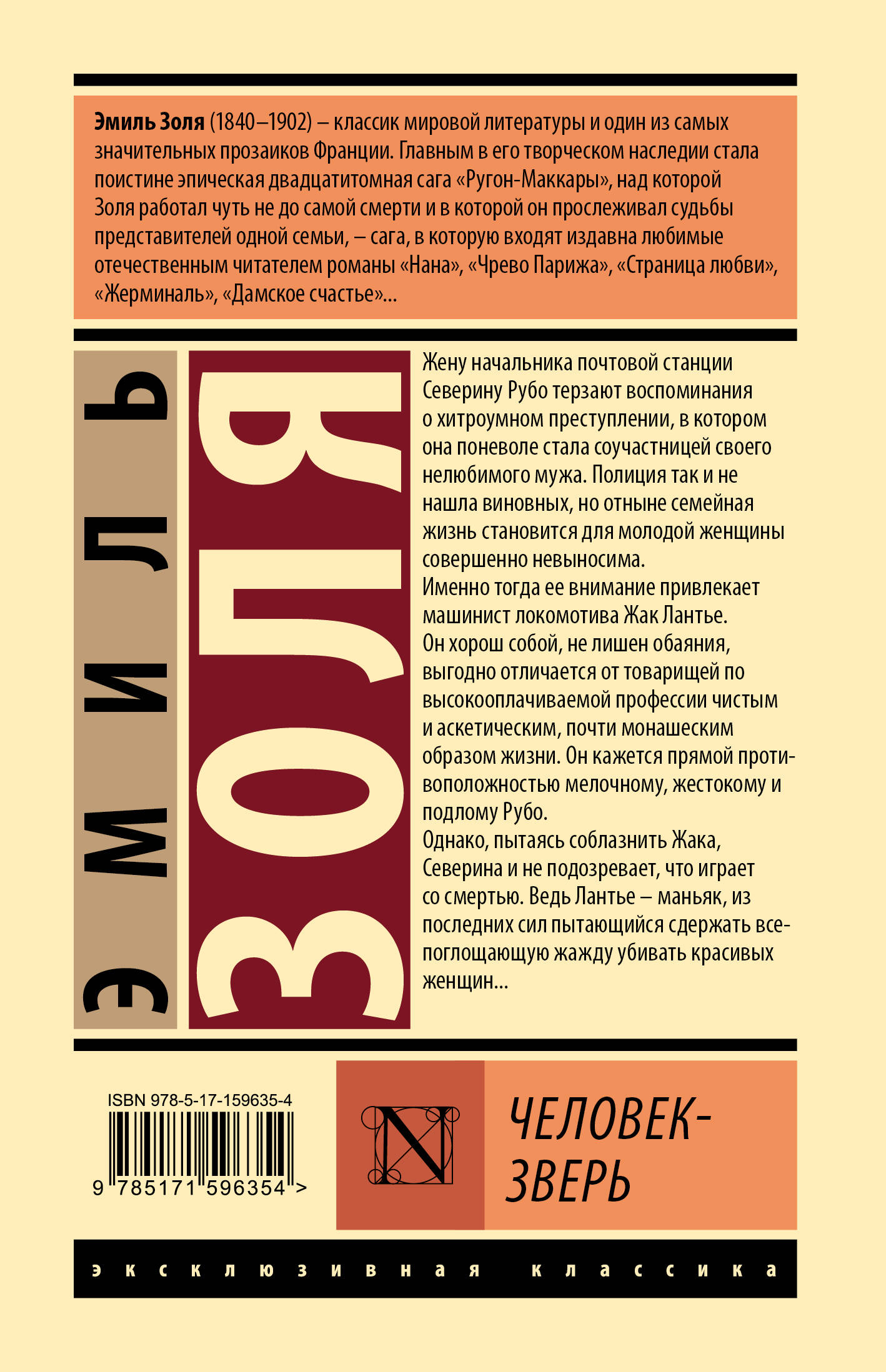 Жену начальника почтовой станции Северину Рубо терзают воспоминания о хитроумном преступлении, в котором она поневоле стала соучастницей своего нелюбимого мужа. Полиция так и не нашла виновных, но отныне семейная жизнь становится для молодой женщины совершенно невыносима. Именно тогда ее внимание привлекает машинист локомотива Жак Лантье. Он хорош собой, не лишен обаяния, выгодно отличается от товарищей по высокооплачиваемой профессии чистым и аскетическим, почти монашеским образом жизни. Он кажется прямой противоположностью мелочному, жестокому и подлому Рубо. Однако, пытаясь соблазнить Жака, Северина и не подозревает, что играет со смертью. Ведь Лантье - маньяк, из последних сил пытающийся сдержать всепоглощающую жажду убивать красивых женщин...| Издательство | Издательство "АСТ" |