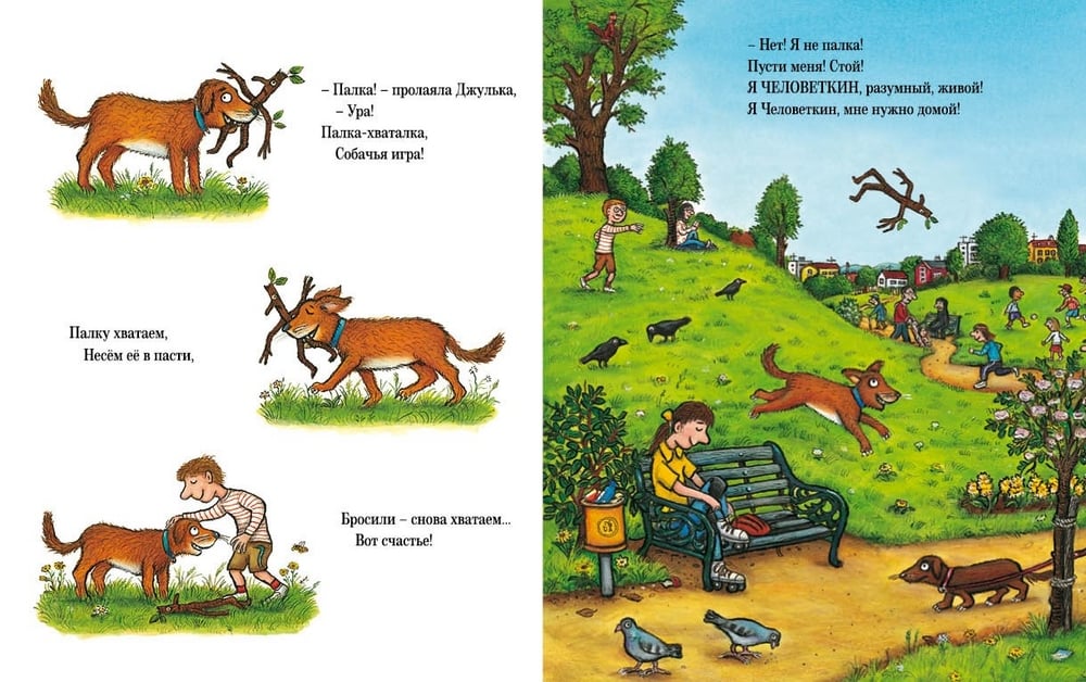 Одним весенним днём Человеткин отправился на пробежку, но был схвачен собакой, которая приняла его за обыкновенную палку. Дети играли и бросили его в реку, а лебедь увидел в нем прутик дня гнезда. Осень сменит лето, придёт снежная зима - горемычный Человеткин перебывает мачтой для флага, шпагой, клюшкой, бумерангом, рукой для снеговика. Неужели он никогда не вернется домой, к челодеткам?
