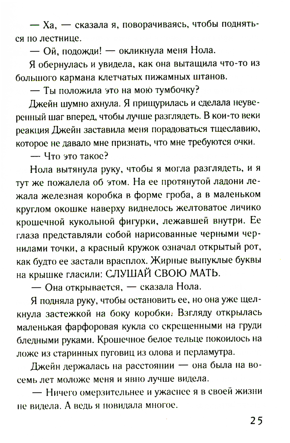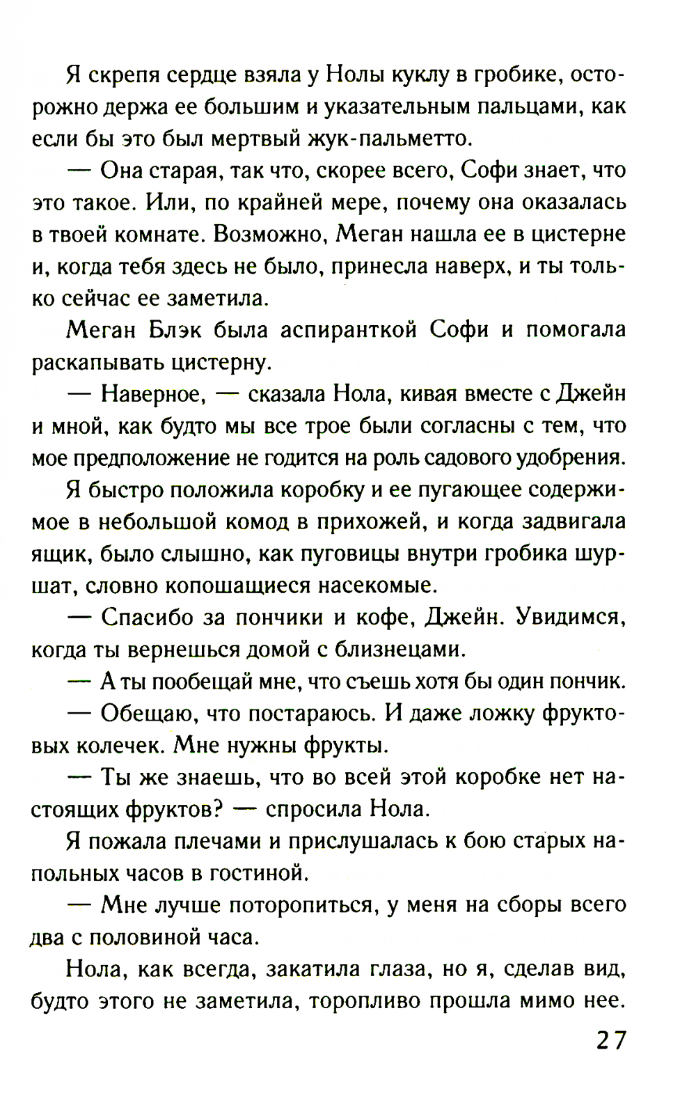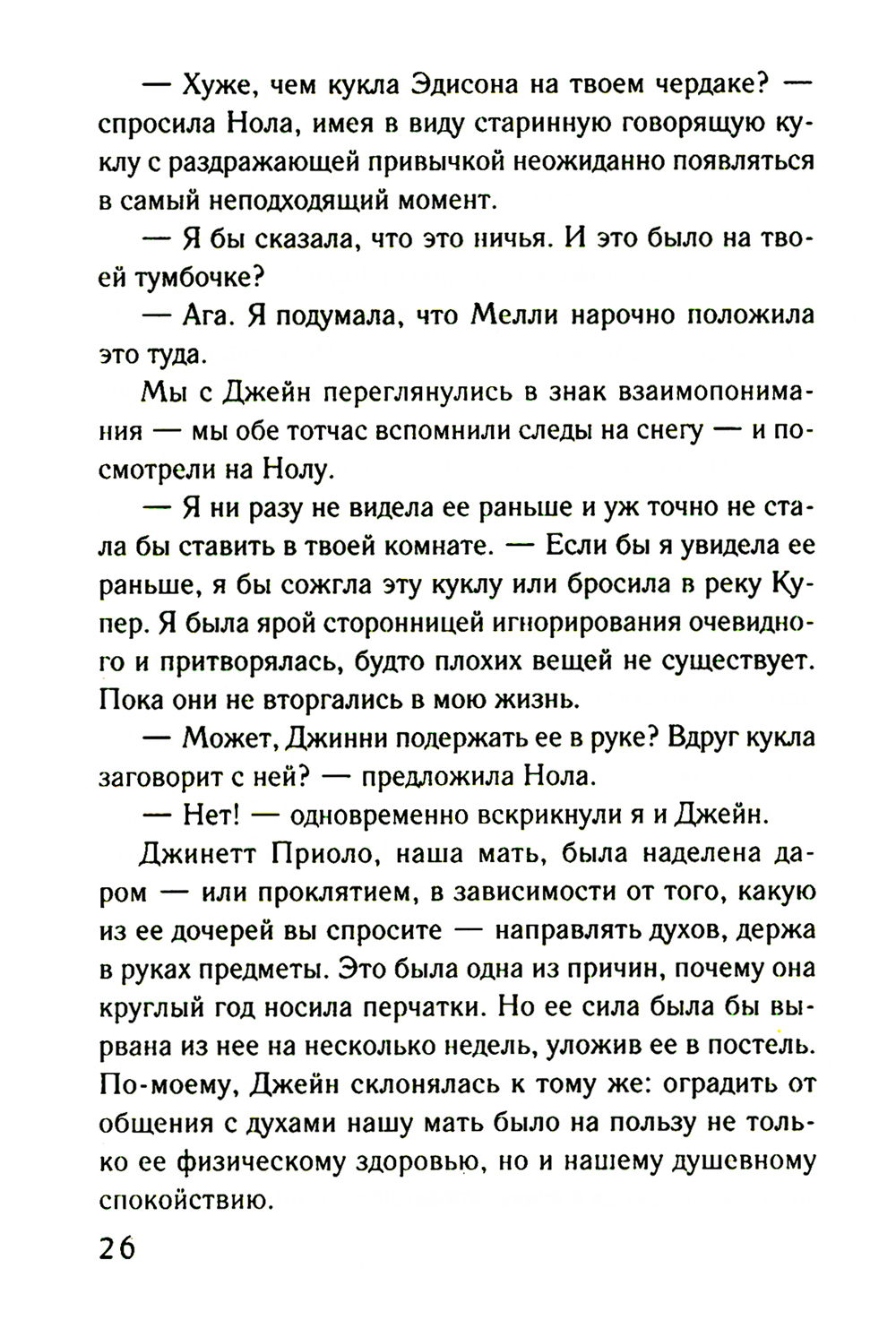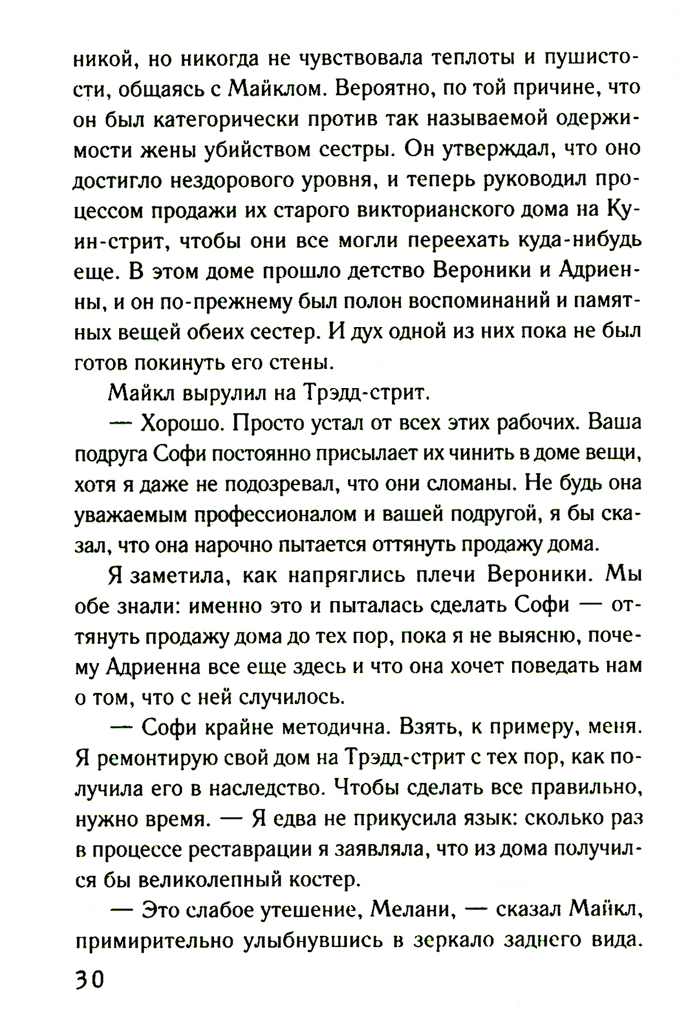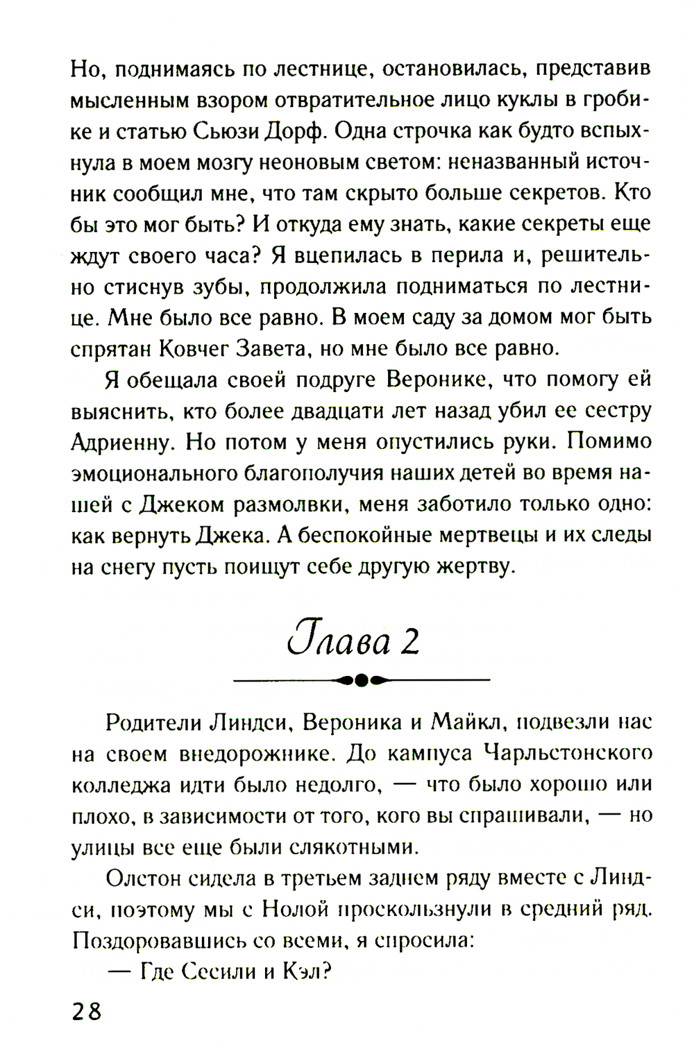 Жизнь Мелани полна взлетов и падений. Она в серьезном разладе со своим мужем Джеком, a ещё ей никак не удается разгадать тайну убийства, о расследовании которого попросила ее подруга. Даже талант медиума не помогает Мелани. Тем временем в разных местах ее дома то и дело появляется жутковатая кукла. Мелани знает: это дурной знак, который, возможно, связан со старинным алмазом, спрятанным в этих стенах. Алмазом хотят завладеть слишком многие, поэтому Мелани и Джеку как никогда нужна поддержка друг друга. Им придется принять важные решения, чтобы спасти свой брак и близких.| Издательство | Эксмо |