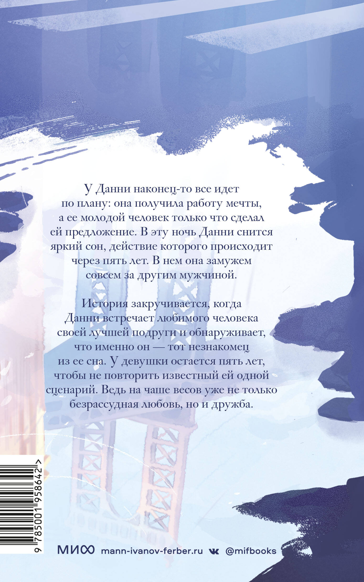 Романтическая комедия, которая разворачивается в серьезный роман, посвященный дружбе, потере и любви. У Данни наконец-то все идет по плану: она получила работу мечты, а ее молодой человек только что сделал ей предложение. В эту ночь Данни снится яркий сон, действие которого происходит через пять лет. В нем она замужем совсем за другим мужчиной. История закручивается, когда Данни встречает любимого человека своей лучшей подруги и обнаруживает, что именно он - тот незнакомец из ее сна. У девушки остается пять лет, чтобы не повторить известный ей одной сценарий. Ведь на чаше весов уже не только безрассудная любовь, но и дружба. От автора Благодарственные строки своей последней книги The Dinner List ("Список приглашенных") я закончила следующими словами: "Если Провидение сыграло с вами злую шутку, если любовь предала вас - не отчаивайтесь. Это не конец вашей истории". Теперь я хочу приписать к ним следующее: "Особенно, когда наступила полночь. Смело идите вперед навстречу тому, что стремится навстречу вам". Для кого эта книга: Для читателей эмоциональных современных романов, от которых захватывает дух. Для поклонников "До встречи с тобой" и "Один день", книг Колин Гувер и Эмили Генри. Фишки книги: Мировой романтический бестселлер с суперобложкой художницы MARIK. Книга переведена на 22 языка. Более 350 тысяч оценок на Goodreads! Входит в рейтинг Amazon "Лучшая современная литература". Бестселлер New York Times. Выбор книжных клубов "Доброе утро, Америка", FabFitFun и Marie Claire.| Издательство | МАНН, ИВАНОВ И ФЕРБЕР ООО |