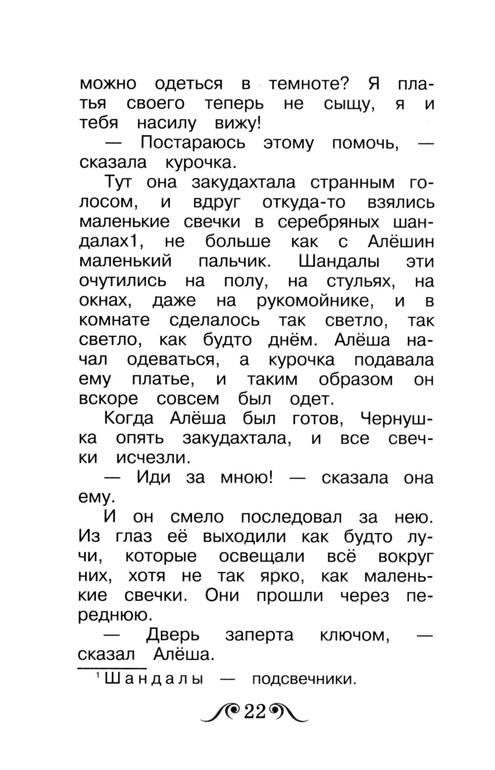 Впервые сказка была опубликована в 1829 году. Алексей Константинович Толстой написал её для своего десятилетнего племянника Алёши, который в будущем станет писателем. Герой сказки, мальчик Алёша, за свою доброту и отзывчивость попадает в волшебный мир, где даже курица оказывается не простой, а могущественным министром в подземном королевстве. Подземный король дал Алёше семечко, с которым Алёша всегда будет знать урок, даже не уча его. Мальчик, начав получать хорошие отметки, стал гордым, заносчивым и был изгнан из волшебного царства. Сказка учит быть честным, добрым, скромным, трудолюбивым, думать о том, как твои поступки могут повлиять на жизнь окружающих.| Издательство | Либри пэр бамбини |