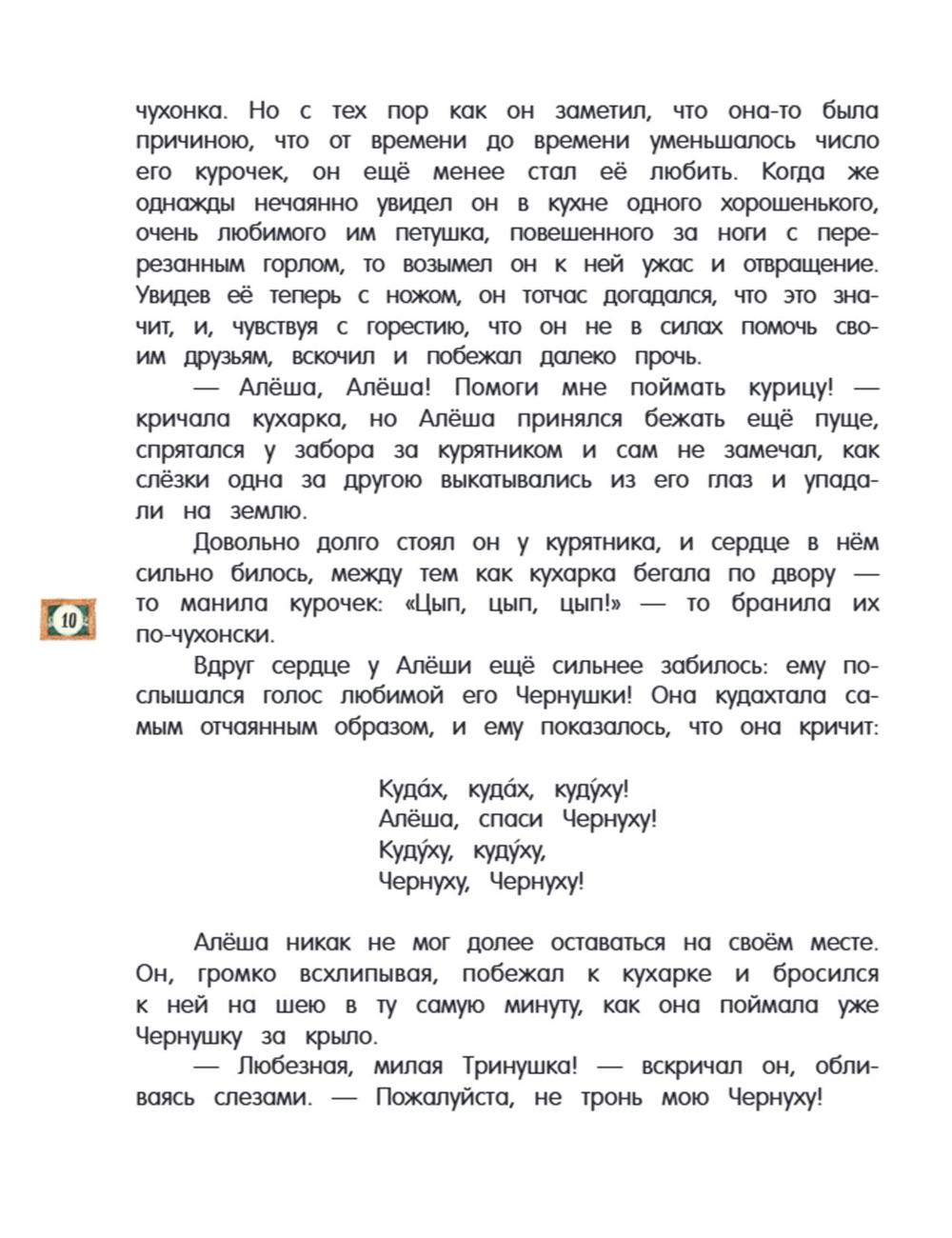 Мальчик Алеша спасает от кухарки свою любимицу Чернушку, не подозревая, что его курица на самом деле - министр волшебного народца. В награду он получает чудесную способность отвечать урок не заучивая. Но Алешу ждет нелегкое испытание, которое поможет ему понять, что всего приятнее честный труд и заслуженная похвала. В книгу также вошли сказки Лидии Чарской. «Волшебный оби» - о дочери знатного самурая, получившей в подарок волшебный пояс-оби, исполняющий желания. «Чудесная звездочка» - сказка о капризной принцессе. Мудрая звездочка учит ее тому, что значат настоящие любовь и уважение. Для детей 7-10 лет.| Издательство | Изд. Лабиринт Пресс |