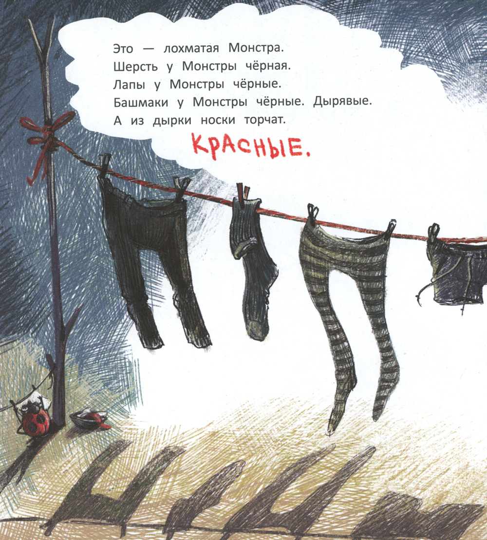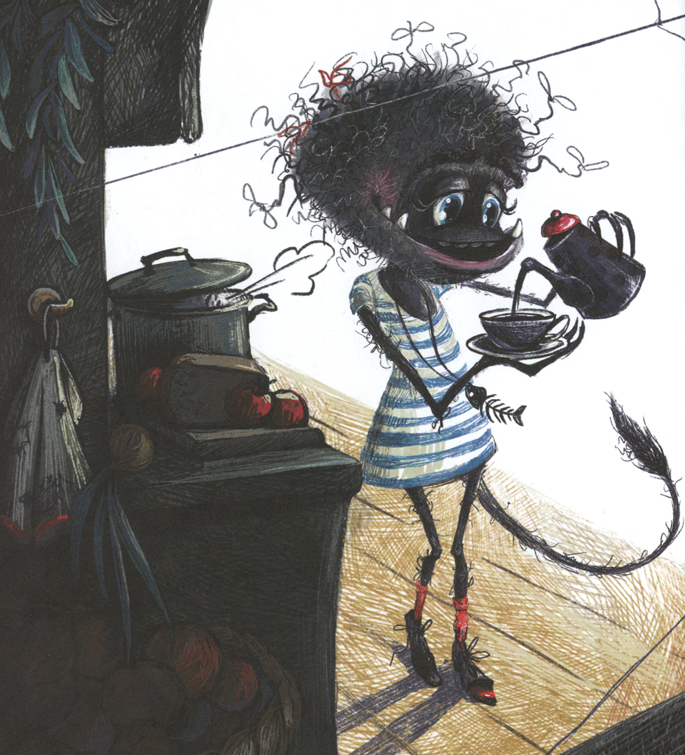 Чёрная Монстра живёт в чёрном доме, пьёт чёрный чай из чёрной чашки и мечтает о том, что её сын вырастет самым страшным чёрным Монстром на свете. Но однажды Чёрная Монстра с ужасом обнаруживает, что у её сына белый-белый хвост.| Издательство | Феникс |
