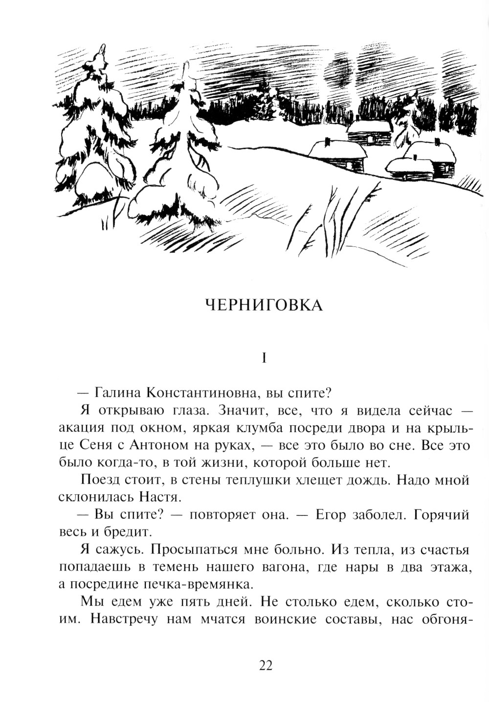 «Черниговка» - это третья и последняя книга трилогии Фриды Вигдоровой о Семене Карабанове и его жене Гале (черниговке, как называл ее Макаренко в «Педагогической поэме»). Действие происходит во время войны, и повествование ведется от лица Гали, которая везет детский дом в эвакуацию в далекий уральский город Заозерск. Теперь она отвечает за всё: дети должны быть накормлены, согреты и не должны сбиться с пути. Семен на фронте, и писем от него нет. Постоянная тревога о тех, кто находится под ее опекой здесь, в Заозерске, о тех, дорогих и близких, кто на фронте, тяжесть ответственности, которая легла на ее плечи, - обо всем этом ведется Галин рассказ. Для старшего школьного возраста.| Издательство | Детская литература |