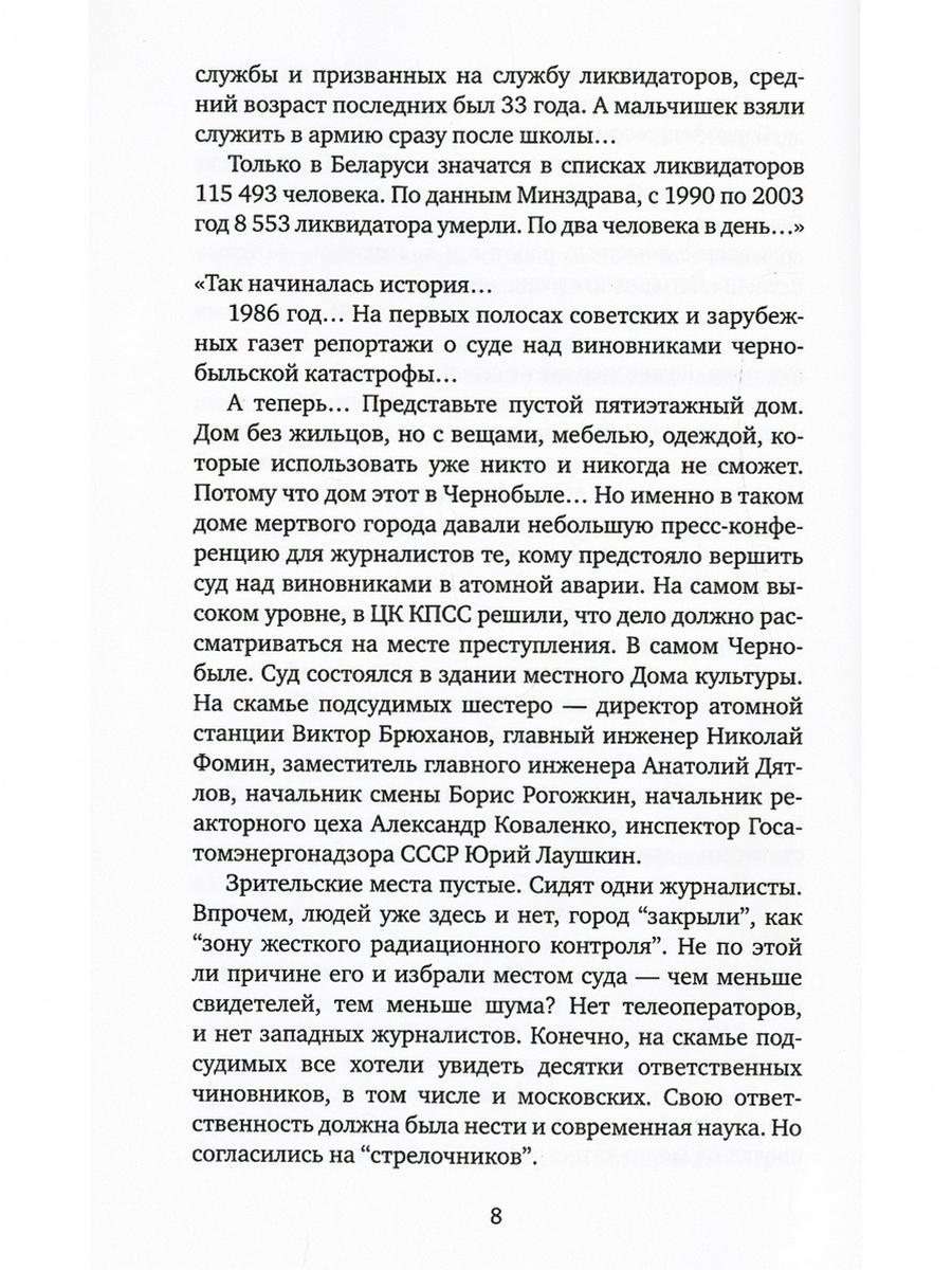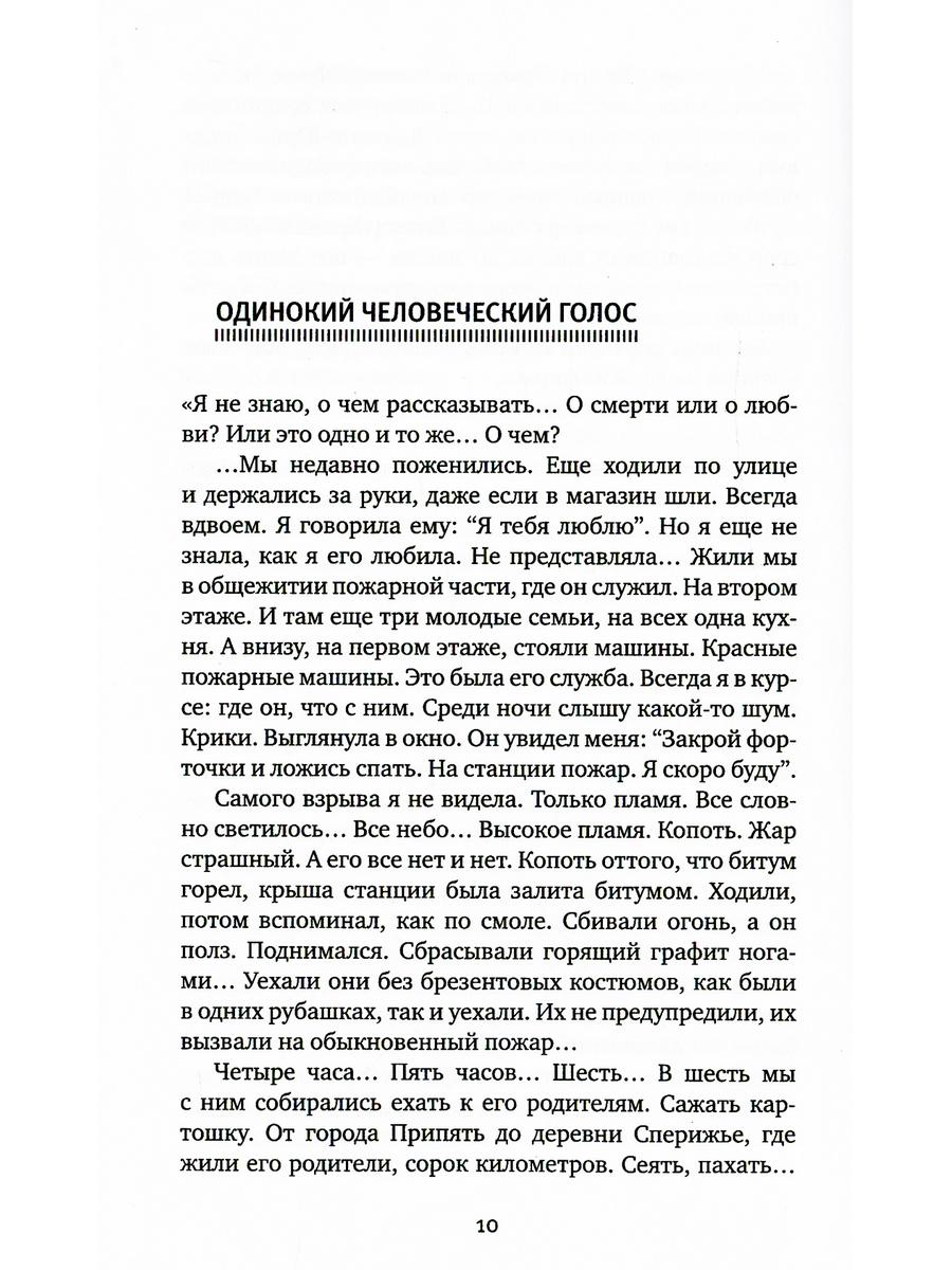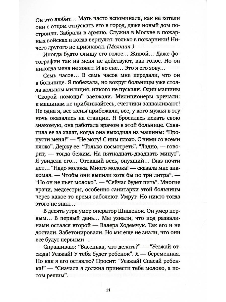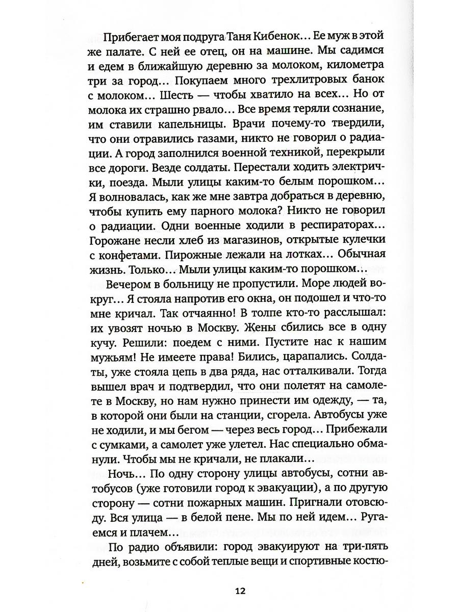 Главной техногенной катастрофе XX века посвящена четвертая книга знаменитого художественно-документального цикла «Голоса Утопии» Светланы Алексиевич, лауреата Нобелевской премии по литературе 2015 года «за многоголосое творчество - памятник страданию и мужеству нашего времени». «Совпали две катастрофы: космическая - Чернобыль, и социальная -ушел под воду огромный социалистический материк. И это, второе, крушение затмило космическое, потому что оно нам ближе и понятнее. То, что случилось в Чернобыле, - впервые на земле, и мы - первые люди, пережившие это». «Чернобыльская молитва» публикуется в новой авторской редакции, с добавлением 30 процентов нового текста, с восстановлением фрагментов, исключенных из прежних изданий по цензурным соображениям.| Издательство | Время |