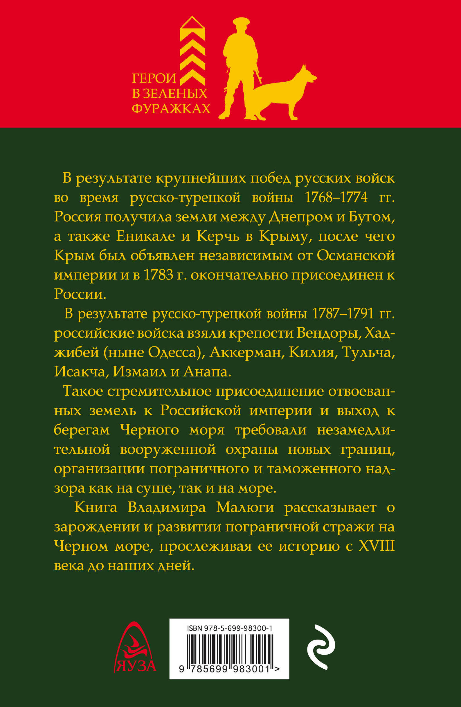 В результате крупнейших побед русских войск во время русско-турецкой войны 1768 - 1774 гг., Россия получила земли между Днепром и Бугом, а также Еникале и Керчь в Крыму, после чего Крым был объявлен независимым от Османской империи и в 1783 г. окончательно присоединен к России. В результате русско-турецкой войны 1787- 1791 гг. российские войска взяли крепости Вендоры, Хаджибей (ныне Одесса), Аккерман, Килия, Тульча, Исакча, Измаил и Анапа. Такое стремительное присоединение отвоеванных земель к Российской империи и выход к берегам Черного моря требовали незамедлительной вооруженной охраны новых границ, организации пограничного и таможенного надзора, как на суше, так и на море. Книга Владимира Малюги рассказывает о зарождении и развитии пограничной стражи на Черном море, прослеживая ее историю с XVIII века до наших дней.| Издательство | ООО "Издательство "Эксмо" |