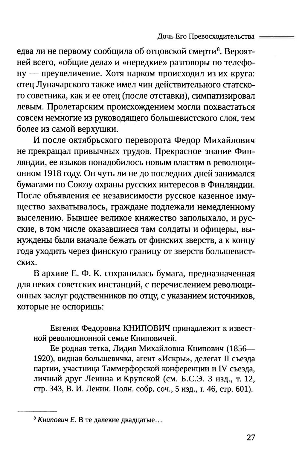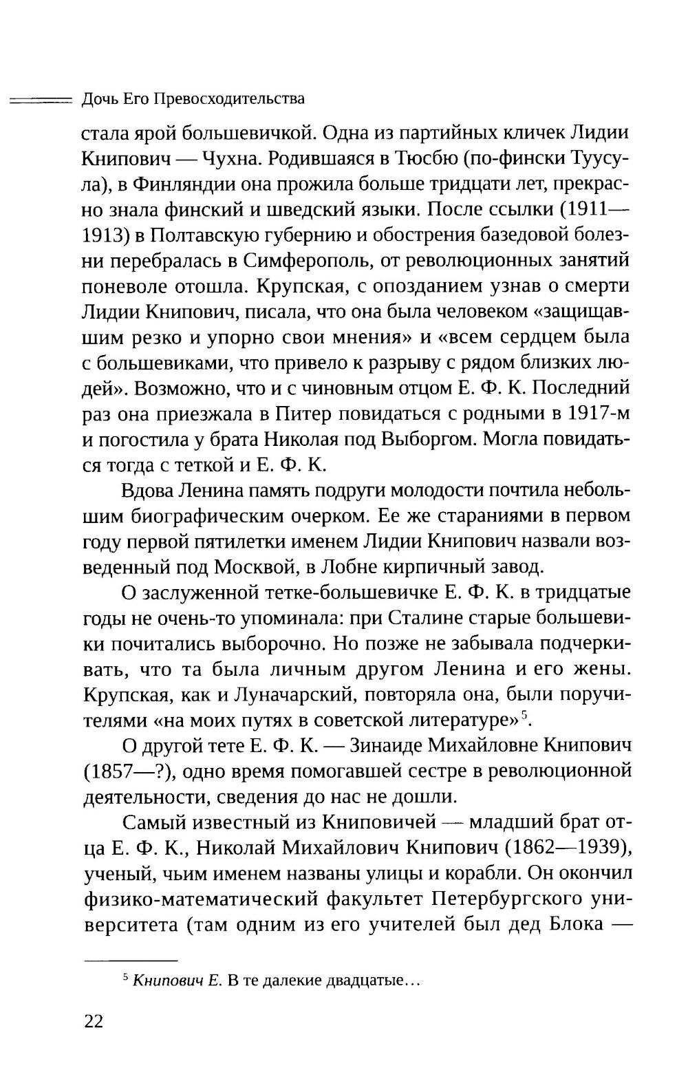 В центре книги Александр Блок и Евгения Федоровна Книпович (1898-1988), переводчица и критик, автор воспоминаний «Об Александре Блоке» (1987), в 1918-1921 гг. близко общавшаяся с поэтом и его семьей, а в 1923-1929 гг. возглавлявшая Ассоциацию по изучению творчества А.А. Блока. В повествовании, основанном преимущественно на архивных материалах, рассказывается о взаимоотношениях Книпович с поэтом, о ее литературном пути от занятий наследием Блока до дружбы с Г.Л. Лелевичем и А.А Фадеевым, об эпизодах ее карьеры советского критика, сыгравшего недобрую роль в судьбе книг Анны Ахматовой, Ксении Некрасовой, Марии Петровых, Арсения Тарковского и др. В приводимой в книге переписке семьи Книпович, в письмах к ней возникают подробности эпохи, а также имена А. К. Виноградова, Е. И. Замятина, Л. Б. Каменева, С. Д. Кржижановского, А. В. Луначарского, С. Д. Мстиславского, В. И. Невского, А. М. Ремизова, П. С. Сухотина, О. Д. Форш, Г. И. Чулкова и др. В приложении публикуются письма тетки и биографа Блока М. А. Бекетовой к Е. Ф. Книпович (1922-1926), материалы, связанные с Андреем Белым и др.| Издательство | Изд."Пушкинский дом" |