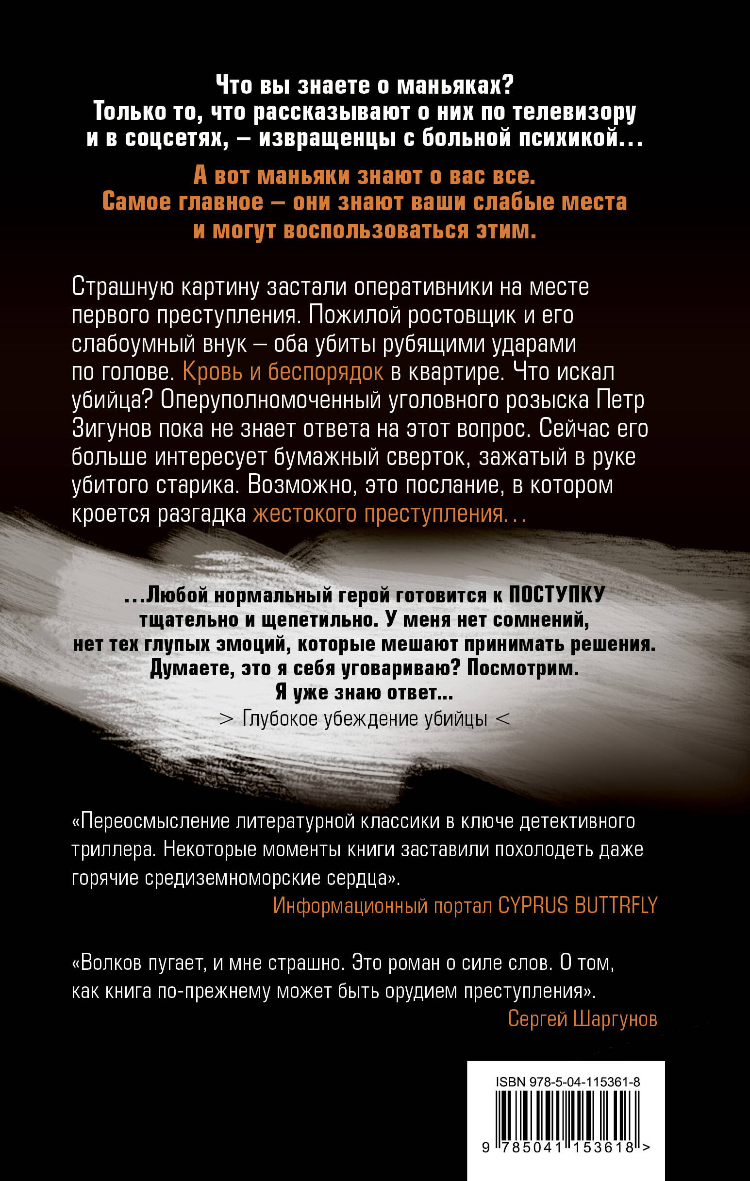 Захватывающий триллер, способный заменить пособие по клинической психологии. Здесь есть всё: и коварный замысел возбужденного рассудка, и хладнокровный план преступления, и убедительные доводы убийцы в своей правоте. Нет только одного - реального понимания действительности. Страшную картину застали оперативники на месте первого преступления. Пожилой ростовщик и его слабоумный внук - оба убиты рубящими ударами по голове. Кровь и беспорядок в квартире. Что искал убийца? Оперуполномоченный уголовного розыска Петр Зигунов пока не знает ответа на этот вопрос. Сейчас его больше интересует бумажный сверток, зажатый в руке убитого старика. Возможно, это послание, в котором кроется разгадка жестокого преступления…| Издательство | ООО "Издательство "Эксмо" |