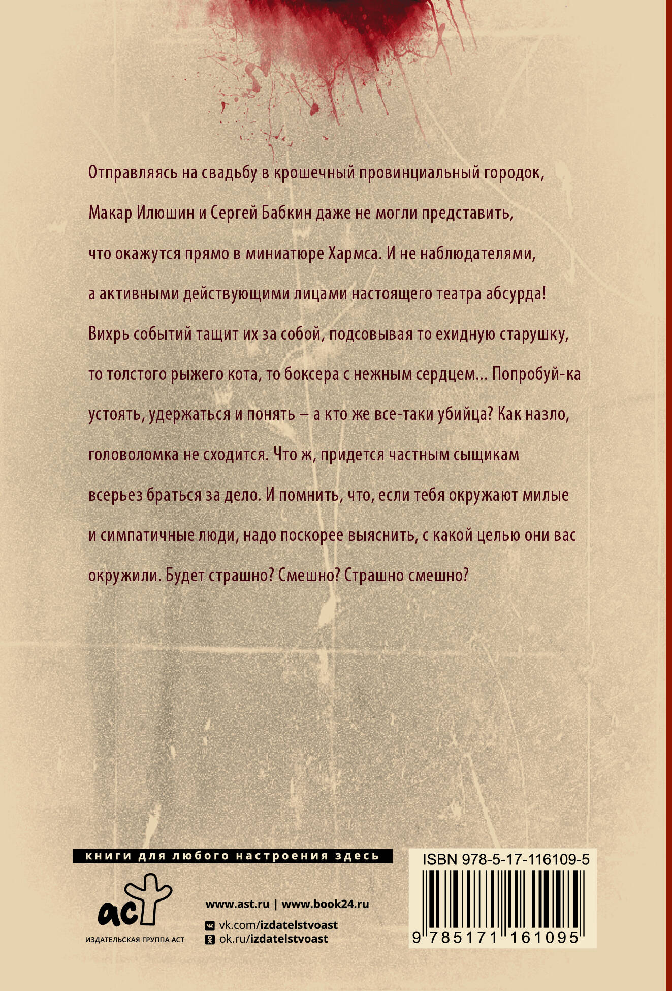 Отправляясь на свадьбу в крошечный провинциальный городок, Макар Илюшин и Сергей Бабкин даже не могли представить, что окажутся прямо в миниатюре Хармса. И не наблюдателями, а активными действующими лицами настоящего театра абсурда! Вихрь событий тащит их за собой, подсовывая то ехидную старушку, то толстого рыжего кота, то боксера с нежным сердцем... Попробуй-ка устоять, удержаться и понять - а кто же все-таки убийца? Как назло, головоломка не сходится. Что ж, придется частным сыщикам всерьез браться за дело. И помнить, что, если тебя окружают милые и симпатичные люди, надо поскорее выяснить, с какой целью они вас окружили. Будет страшно? Смешно? Страшно смешно?| Издательство | Издательство "АСТ" |