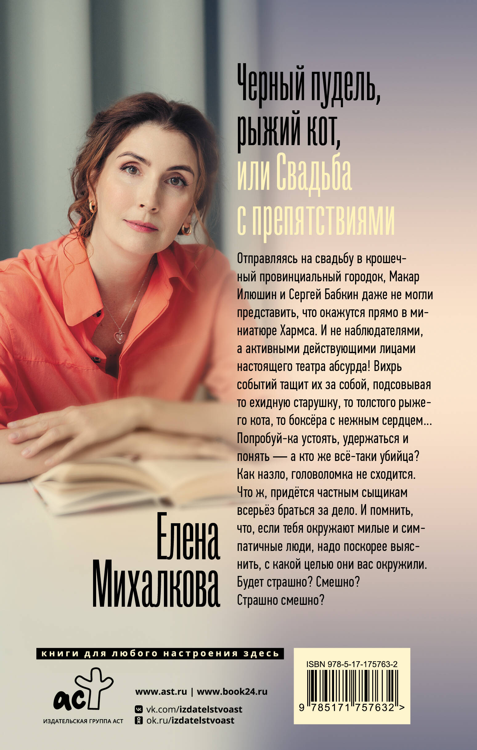 - Переиздание романа в новом оформлении. - Одно из самых странных приключений Илюшина и Бабкина. Они отправляются в городок Шавлов на свадьбу знакомой, а оказываются в абсурдистской зарисовке Хармса. Сначала гибнет скандальная пенсионерка Пудовкина, потом детективный тандем атакуют эксцентричные местные, среди которых боксер с нежной душой и упитанный рыжий кот. Удастся ли в этой босховской неразберихе найти убийцу? - Елена Михалкова - мастер остросюжетного детектива с прошлым помощника следователя. Ее книги вышли общим тиражом более двух миллионов экземпляров, снято 16 экранизаций.| Издательство | Издательство "АСТ" |